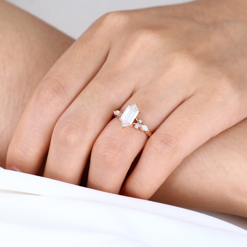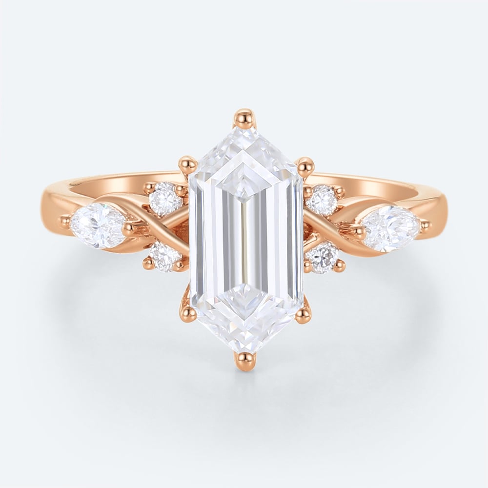 Long Hexagon Cut Lab Grown Diamond Vintage 6-Prong Engagement Ring in Rose Gold