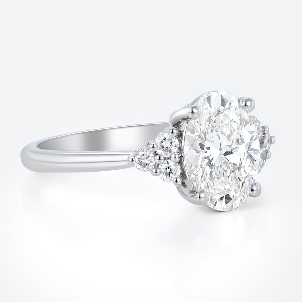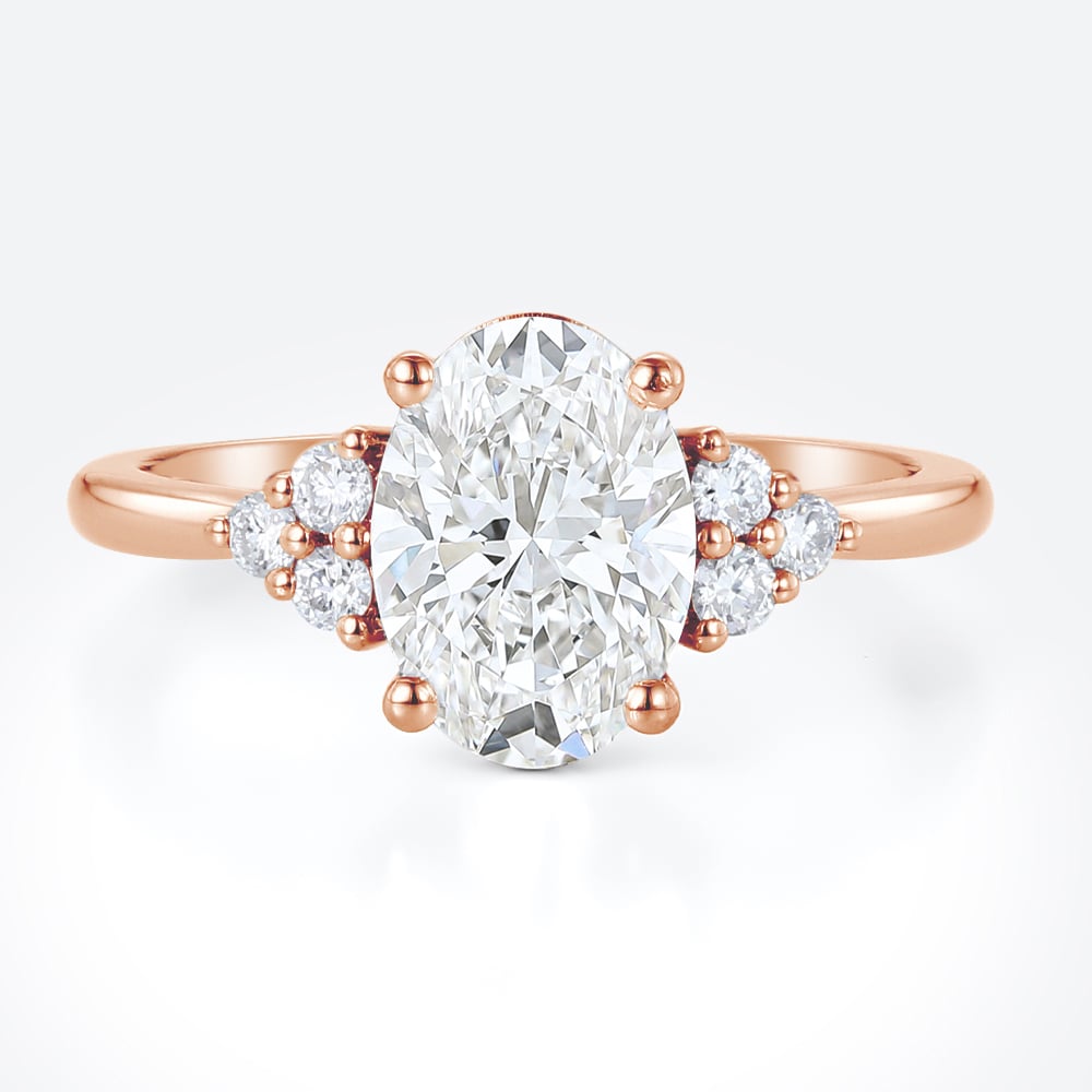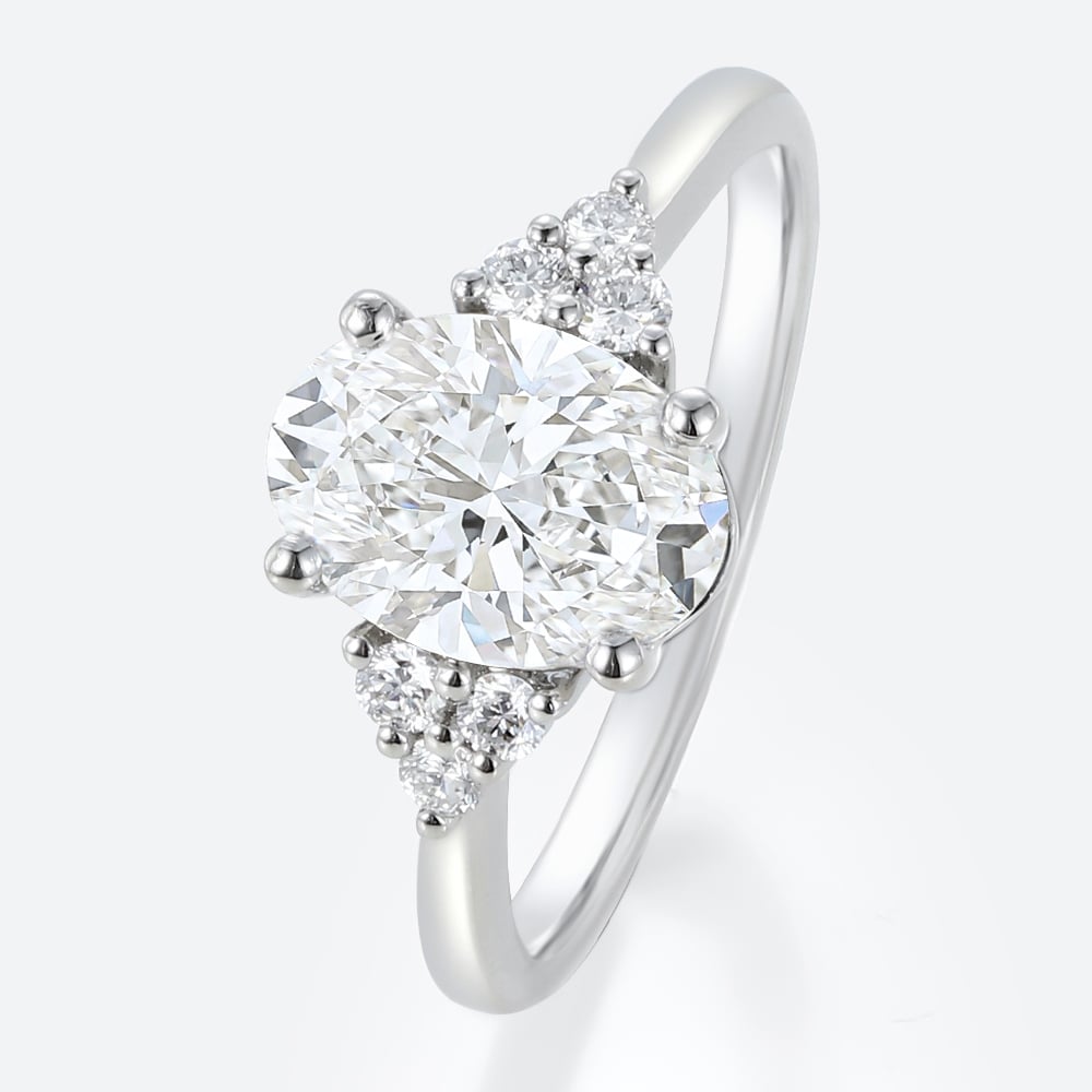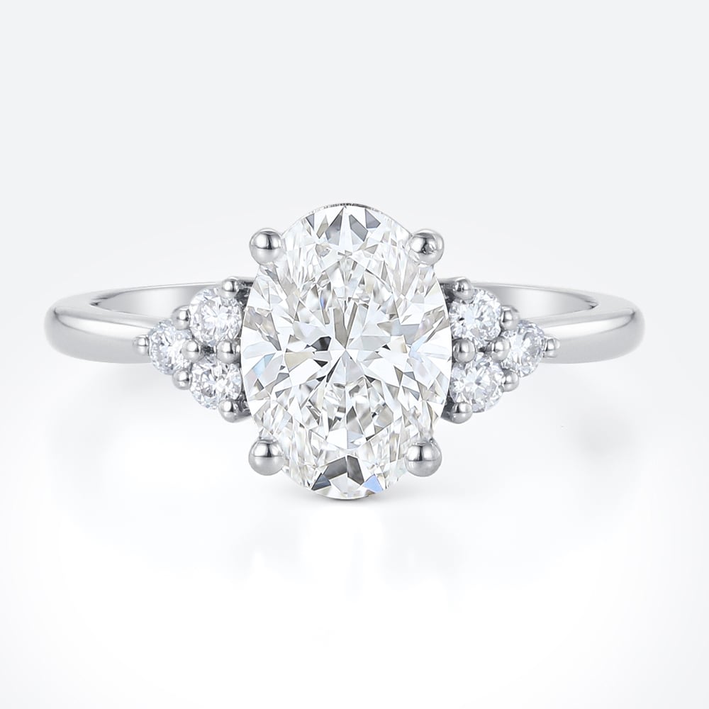 This vintage-inspired engagement ring features an elegant oval-cut lab-grown diamond, framed by marquise and round side stones for a soft, romantic silhouette. Its refined sparkle and balanced proportions make it a timeless choice for everyday wear and special moments alike. Discover more styles in our Oval Engagement Rings and explore the full selection in Lab Diamond Rings.