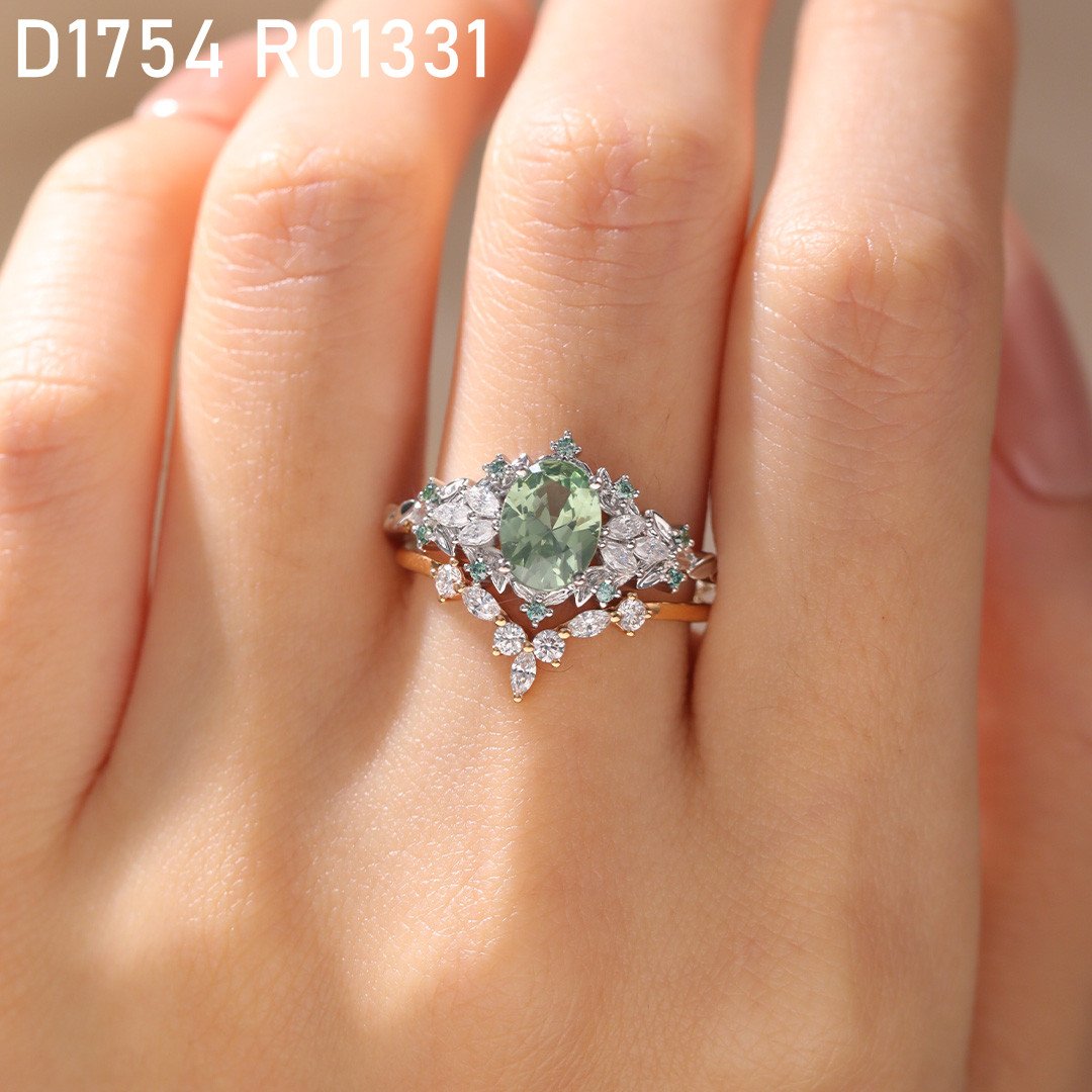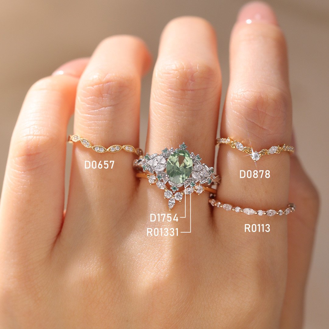 Oval Cut Green Sapphire Engagement Ring White Gold Nature-Inspired Rings Bridal Ring