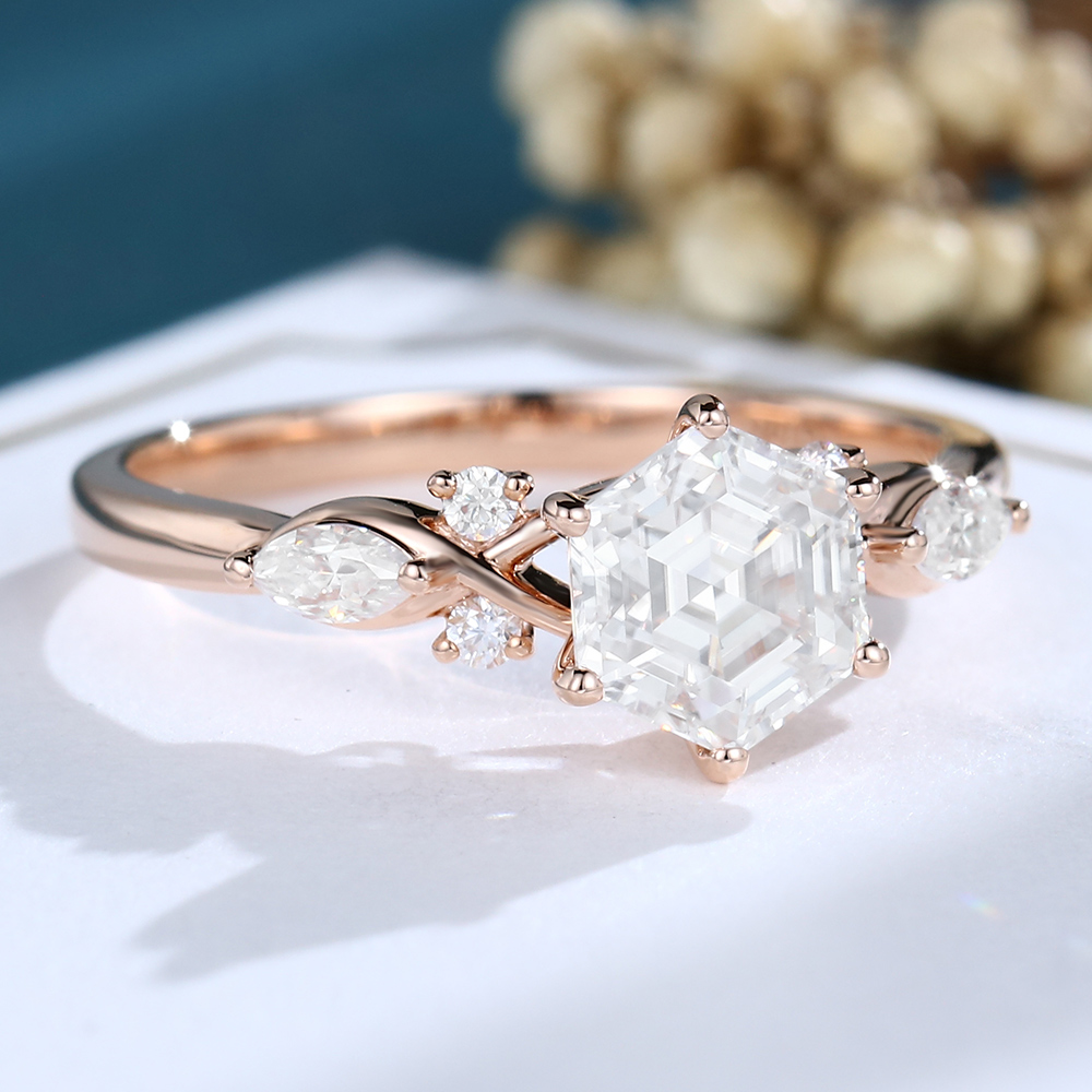 1ct Colorless VS+ Hexagon Cut Lab Grown Diamond Vintage 6-Prong Engagement Ring in White Gold