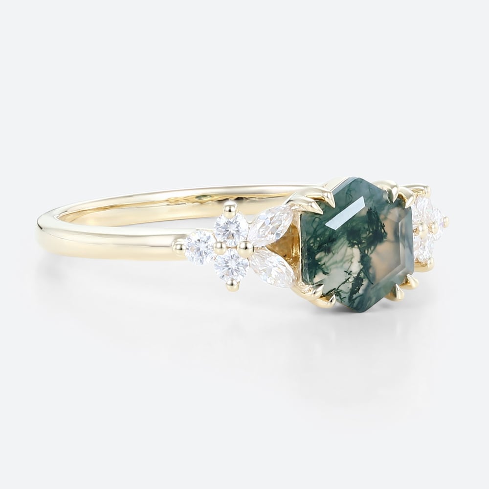 Yellow Gold Hexagon Cut Moss Agate Engagement Ring Simple Engagement Rings