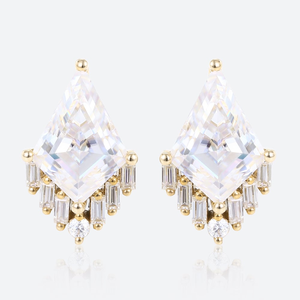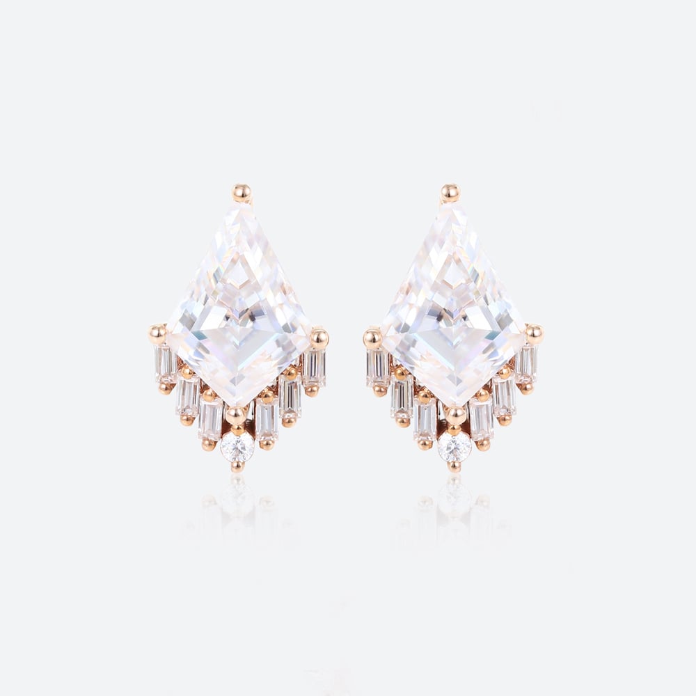 Kite Cut Lab Grown Diamond Art Deco Stud Earrings in Rose Gold