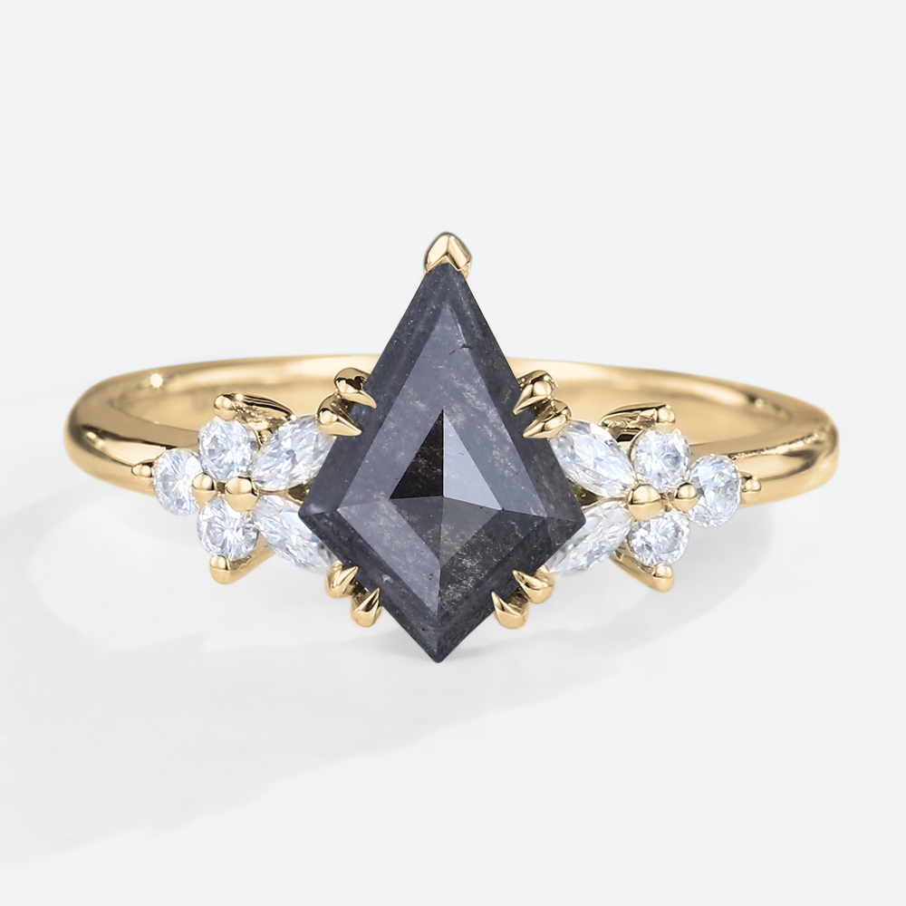 Kite Cut Salt & Pepper Diamond Engagement Ring White Gold Double Claw Cluster Wedding Ring