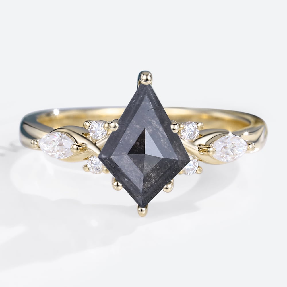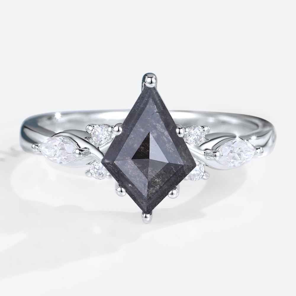 Kite Cut Salt & Pepper Diamond Engagement Ring Vintage Bridal Ring