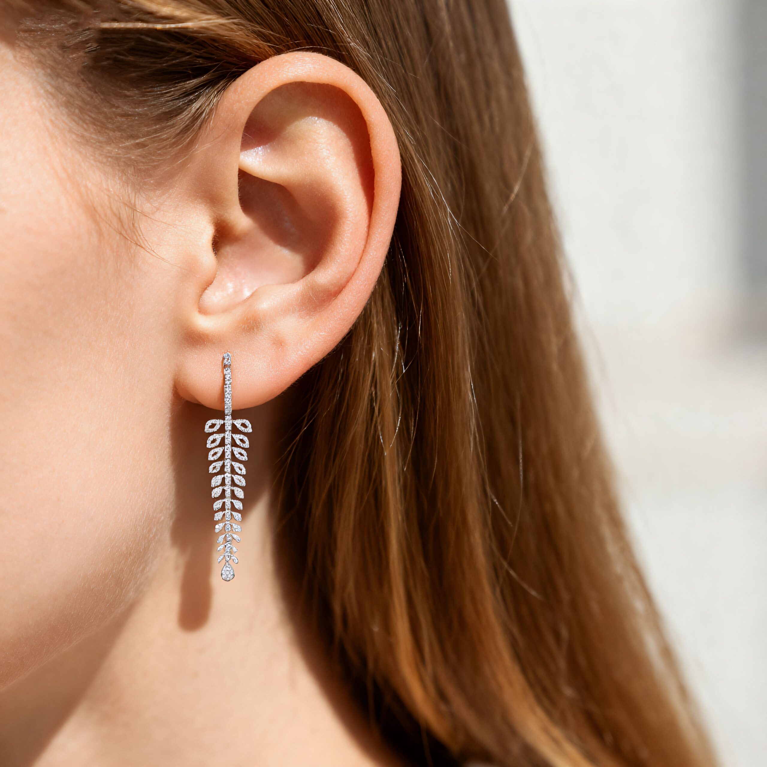 Lab Diamond Drop White Gold Earrings Leaf Statement Drop Earrings