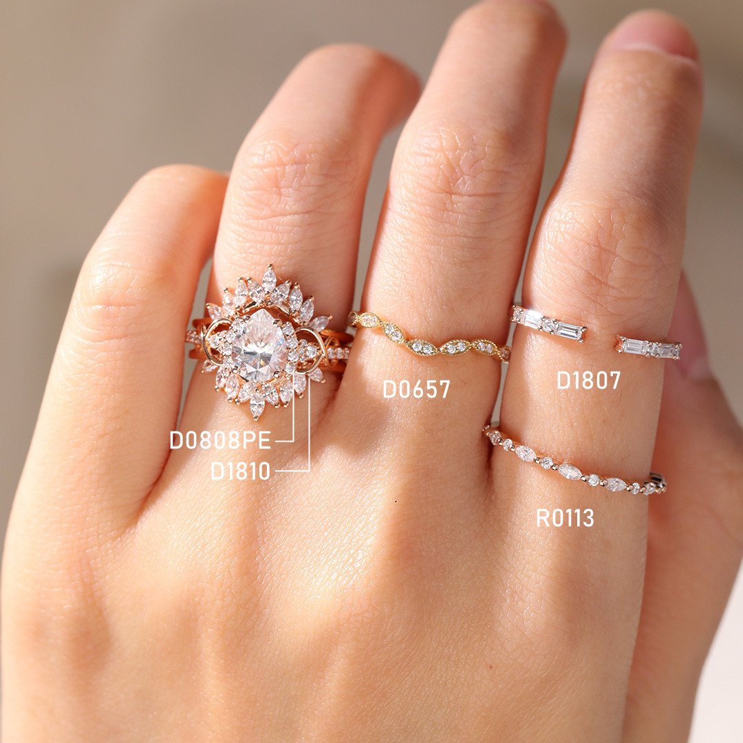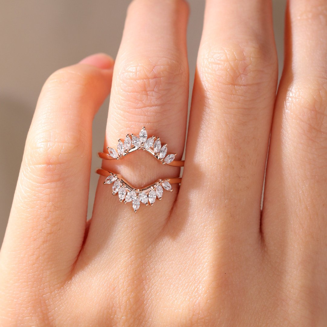 0.54ctw Marquise Cut Lab Grown Diamond Enhancer Rings Double Band Wedding Band in White Gold