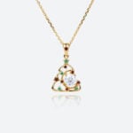 Round Cut Lab Diamond Necklace Christmas Tree Pendant Yuletide Gift