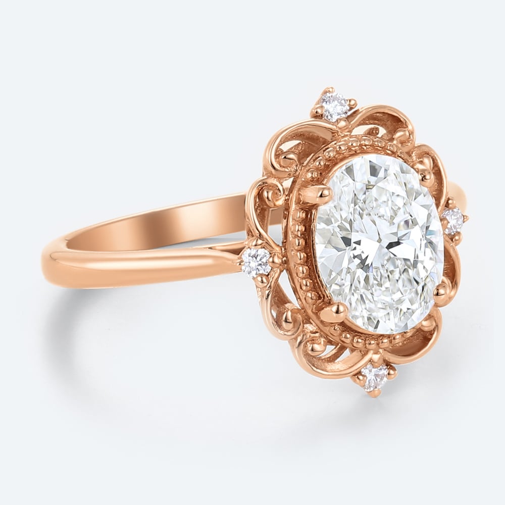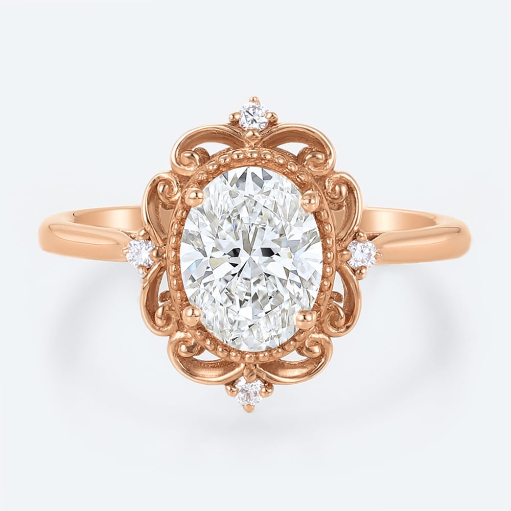 Oval Cut Lab Grown Diamond Vintage 4-Claw Prong Engagement Ring in Rose Gold