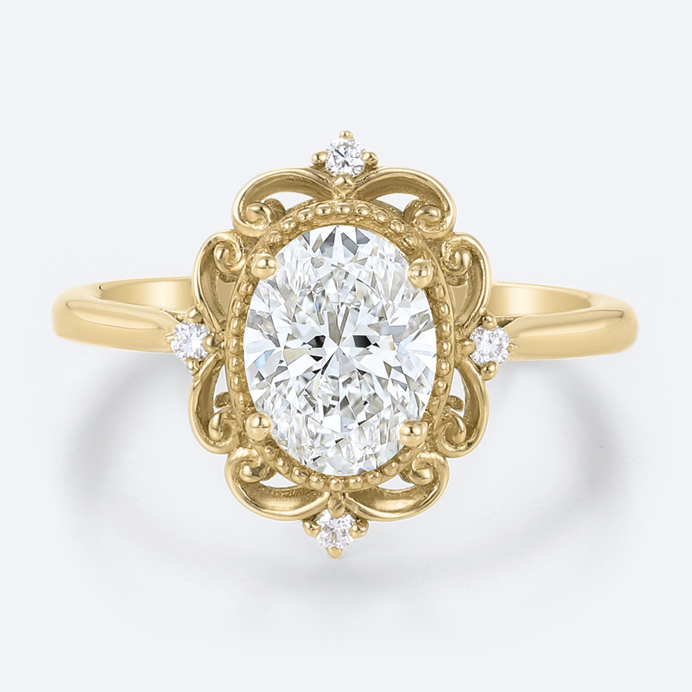 Yellow Gold Oval Lab Grown Diamond Rings​ 1.5ct Vintage 4-Prong Engagement Ring