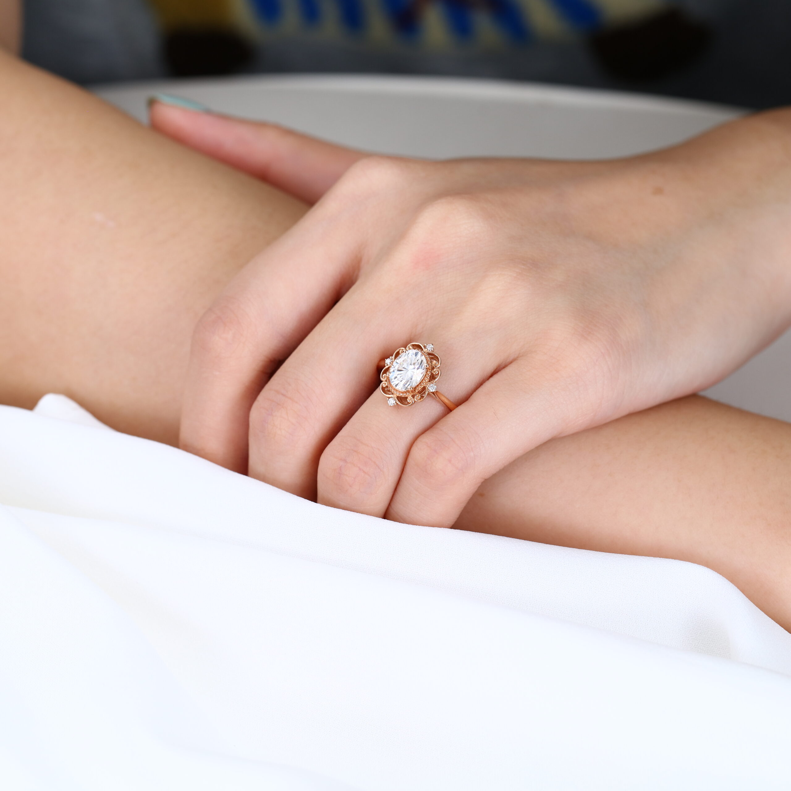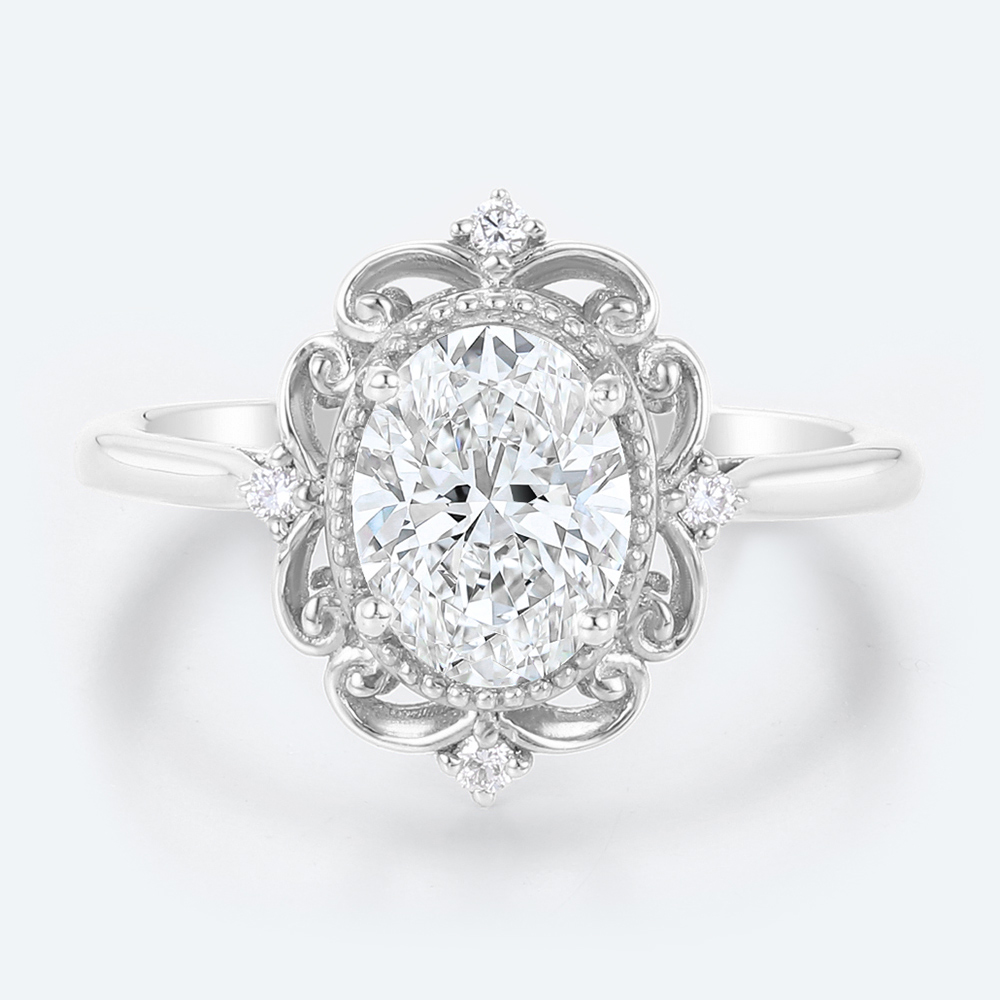 Oval Cut White Sapphire Rings Vintage Unique Gemstone Engagement Rings​