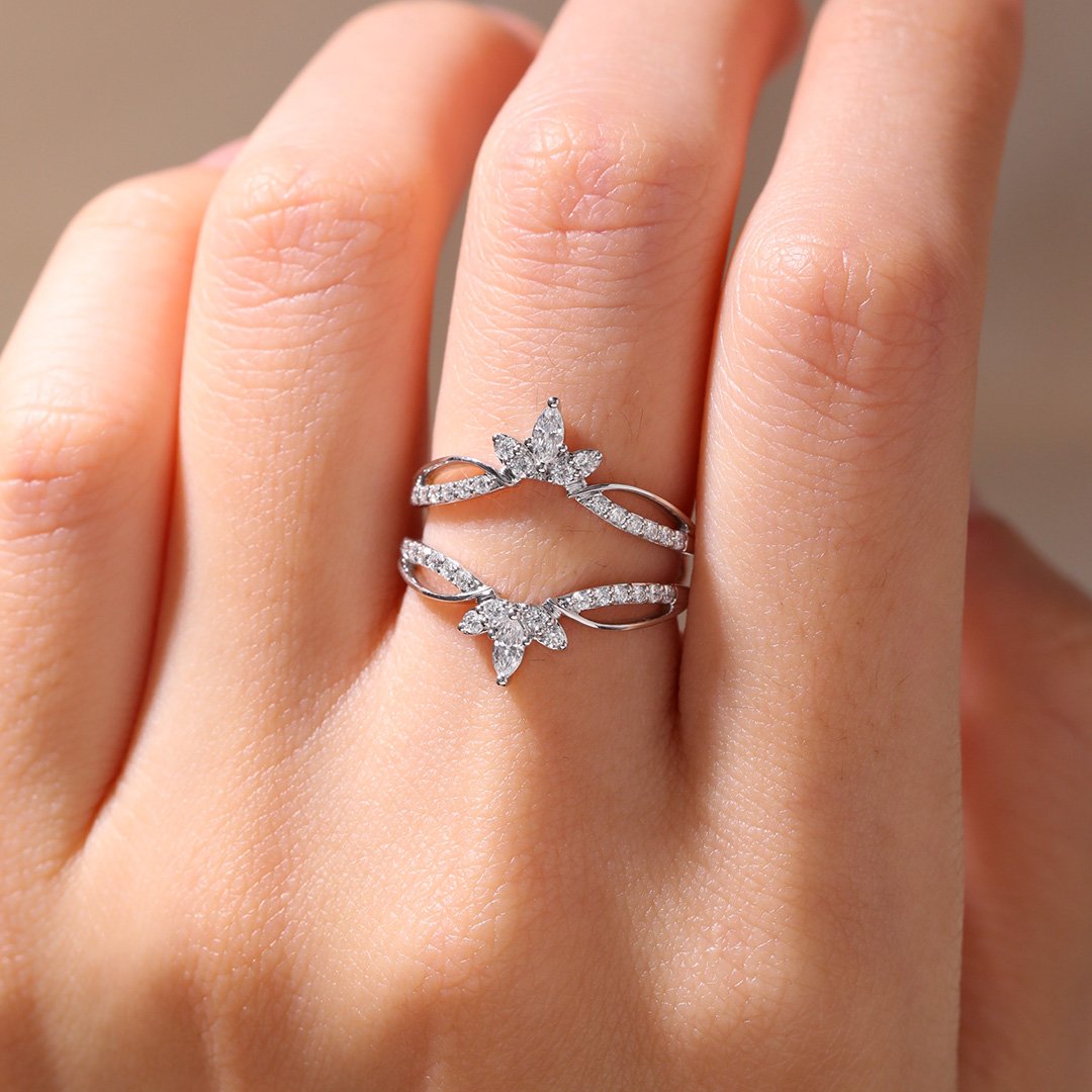 0.44ctw Marquise Lab Grown Diamond Crown Curved Wedding Band Ring Enhancer Band in White Gold