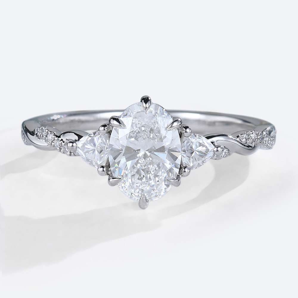 1.5ct Colorless VS+ Oval Cut Lab Grown Diamond Interlaced Pavé 6 Claw Prong Engagement Promise Ring in White Gold
