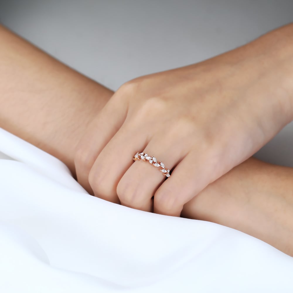 0.39ctw Round & Marquise Cut Lab Grown Diamond Wedding Band Intertwined Design Stacking Ring in Rose Gold