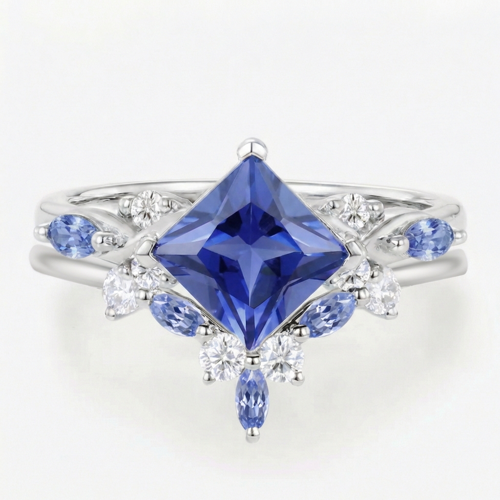 Center Stone: Cornflower Blue Sapphire 6.5MM Princess Cut