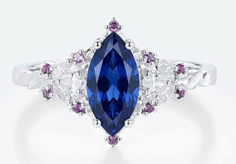 Center Stone: Lab Sapphire 5*10mm Marquise cut