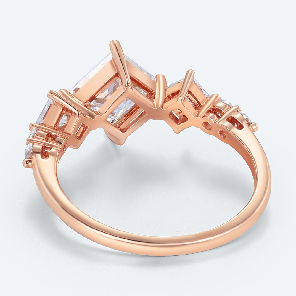 Rose Gold Kite Cut Emerald Engagement Ring Art Deco Unique Promise Ring