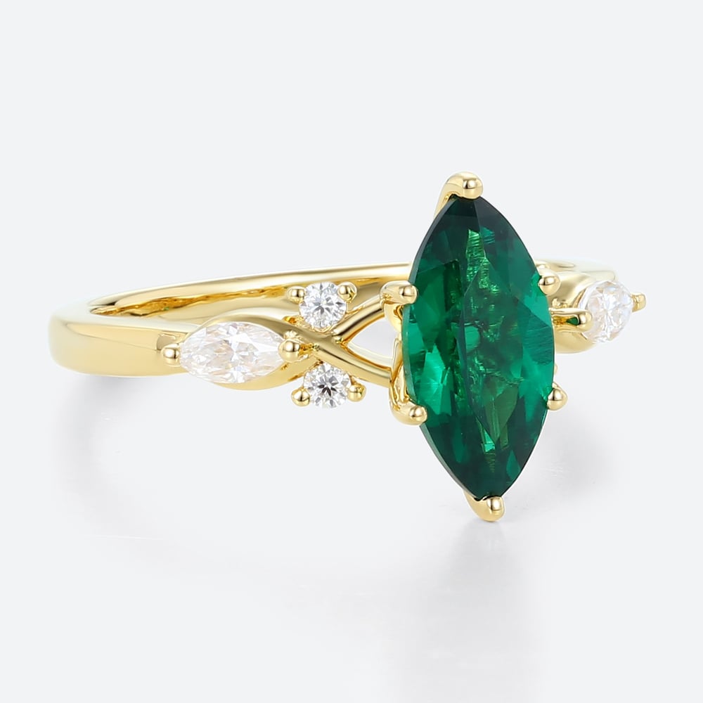 Yellow Gold Marquise Cut Emerald Engagement Rings Vintage Engagement Rings