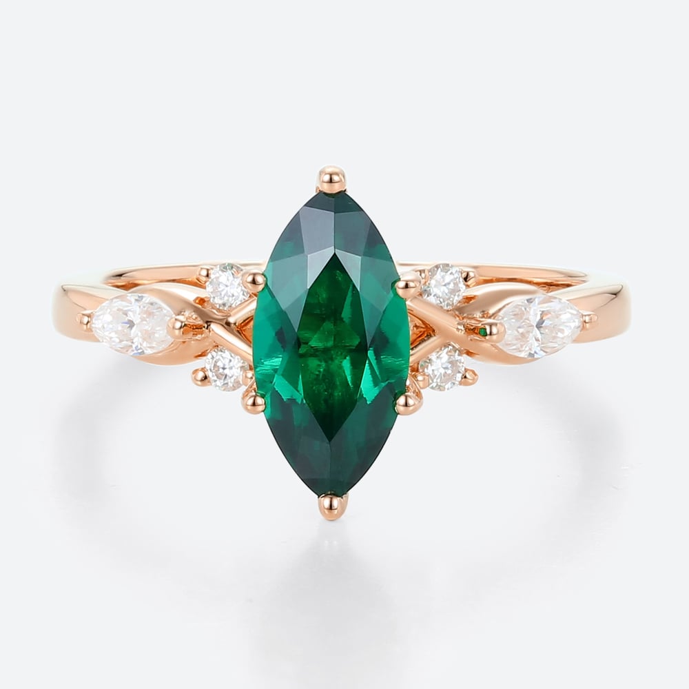 Marquise cut Emerald engagement ring rose gold Moissanite ring vintage Diamond ring art deco unique promise ring anniversary gift