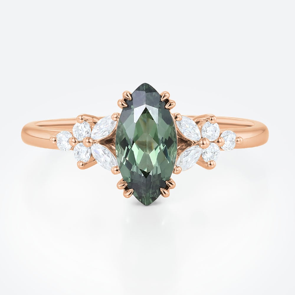 Rose Gold 1.2ct Natural Moonstone Ring Pear Shaped Cluster Bridal Ring