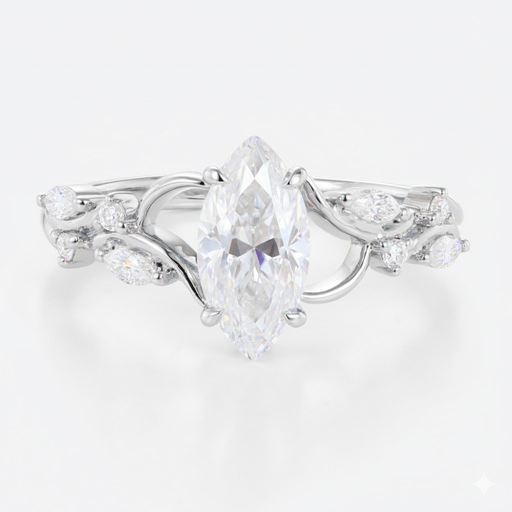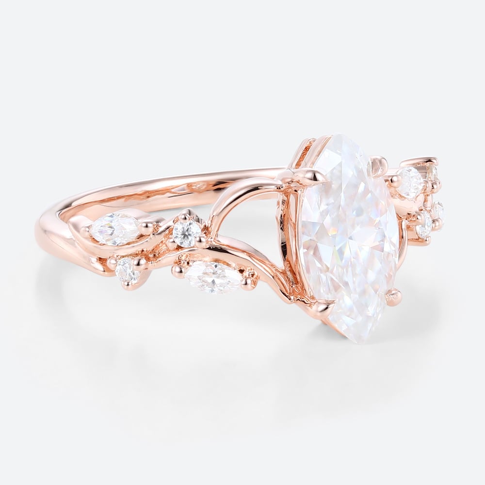 Marquise Cut Moissanite Botanical Twig Engagement Rings in Rose Gold