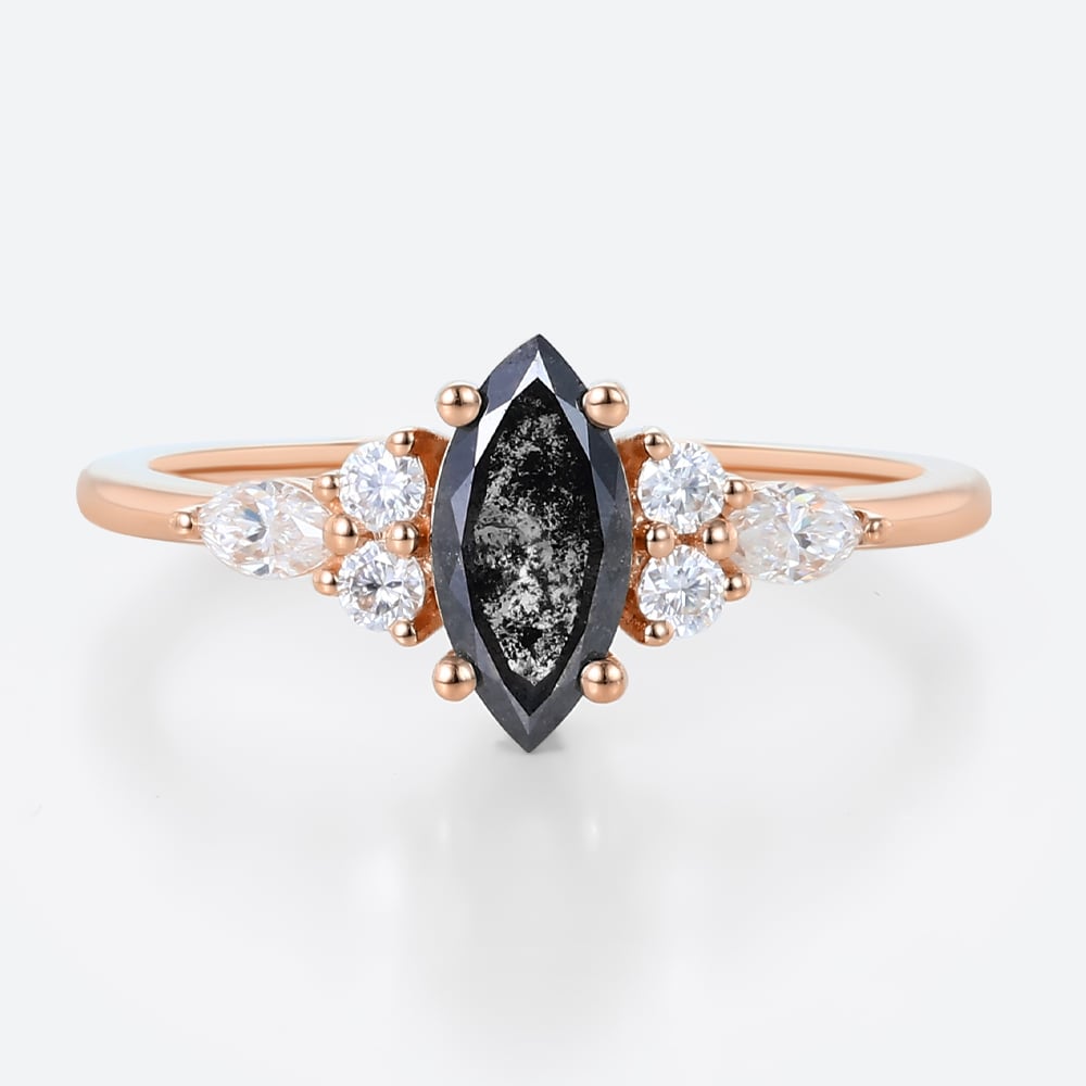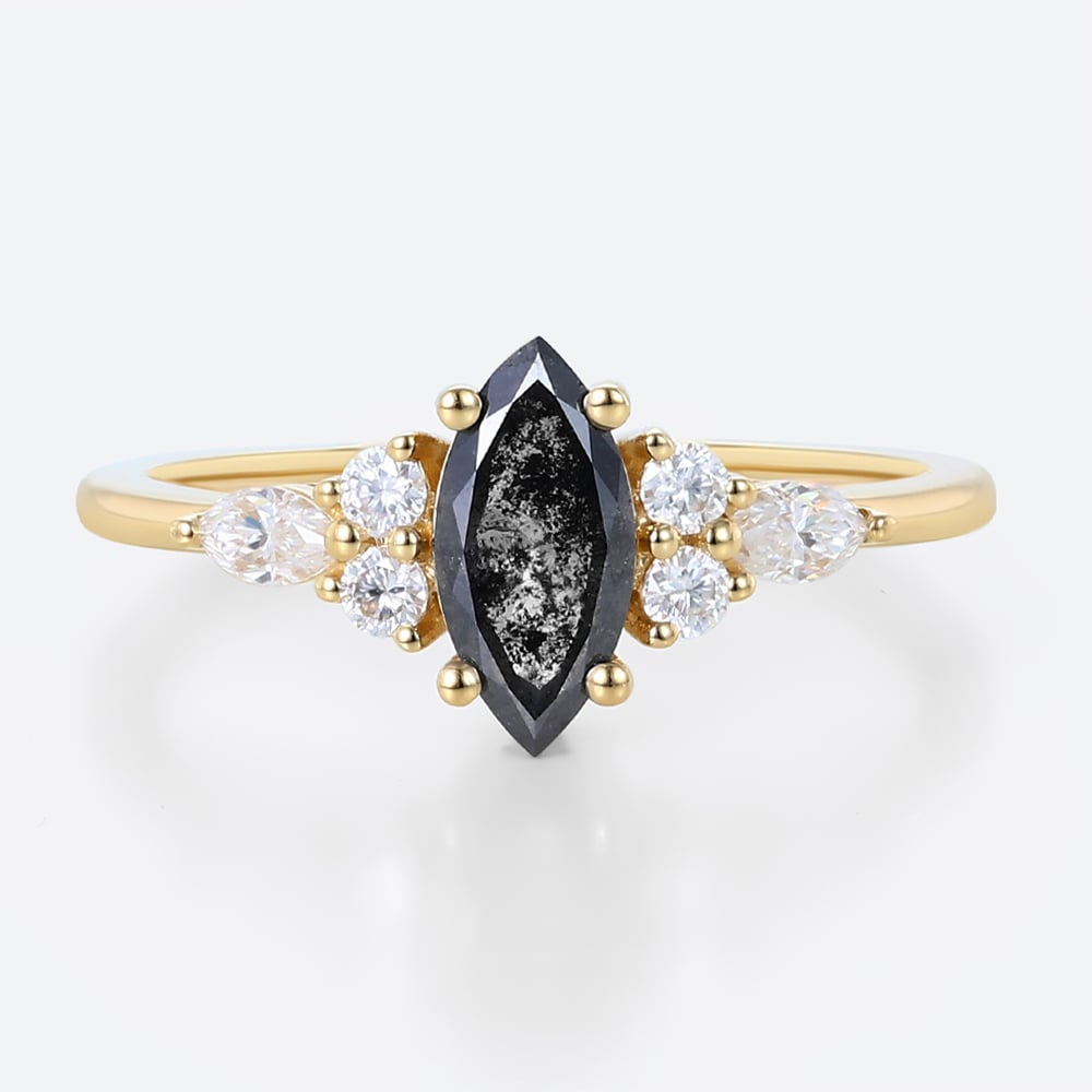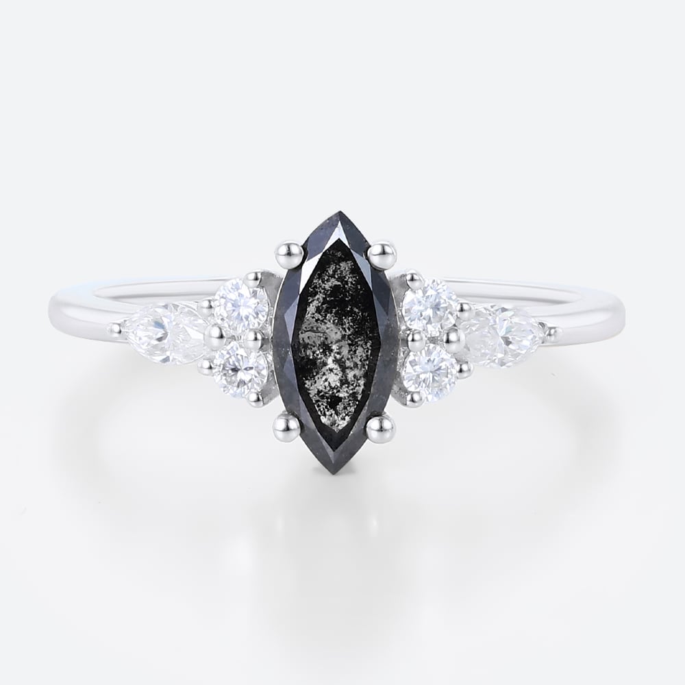 White Gold Marquise Cut Salt & Pepper Diamond Cluster Engagement Ring