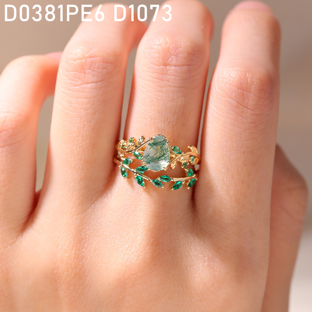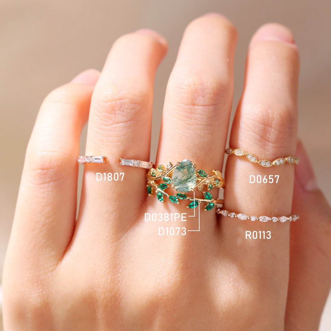 Marquise Emerald Ring Stackable Curved Gold Wedding Rings