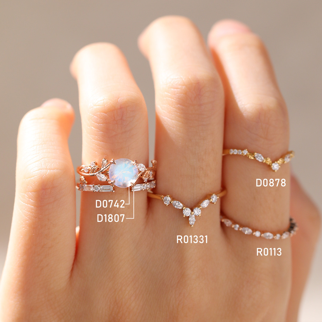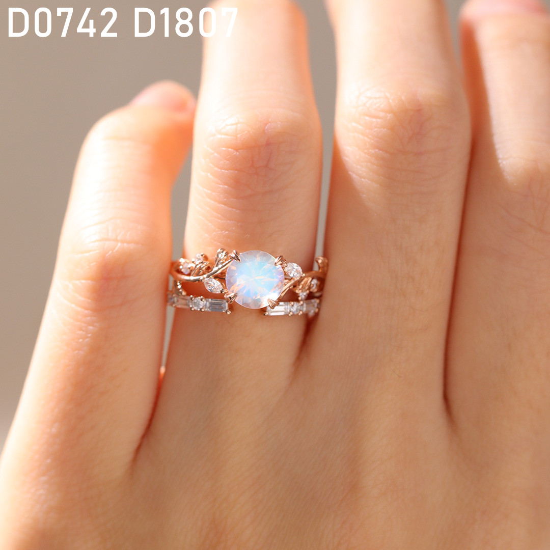 Round Cut Moonstone Engagement Ring Nature-Inspired Bridal Ring