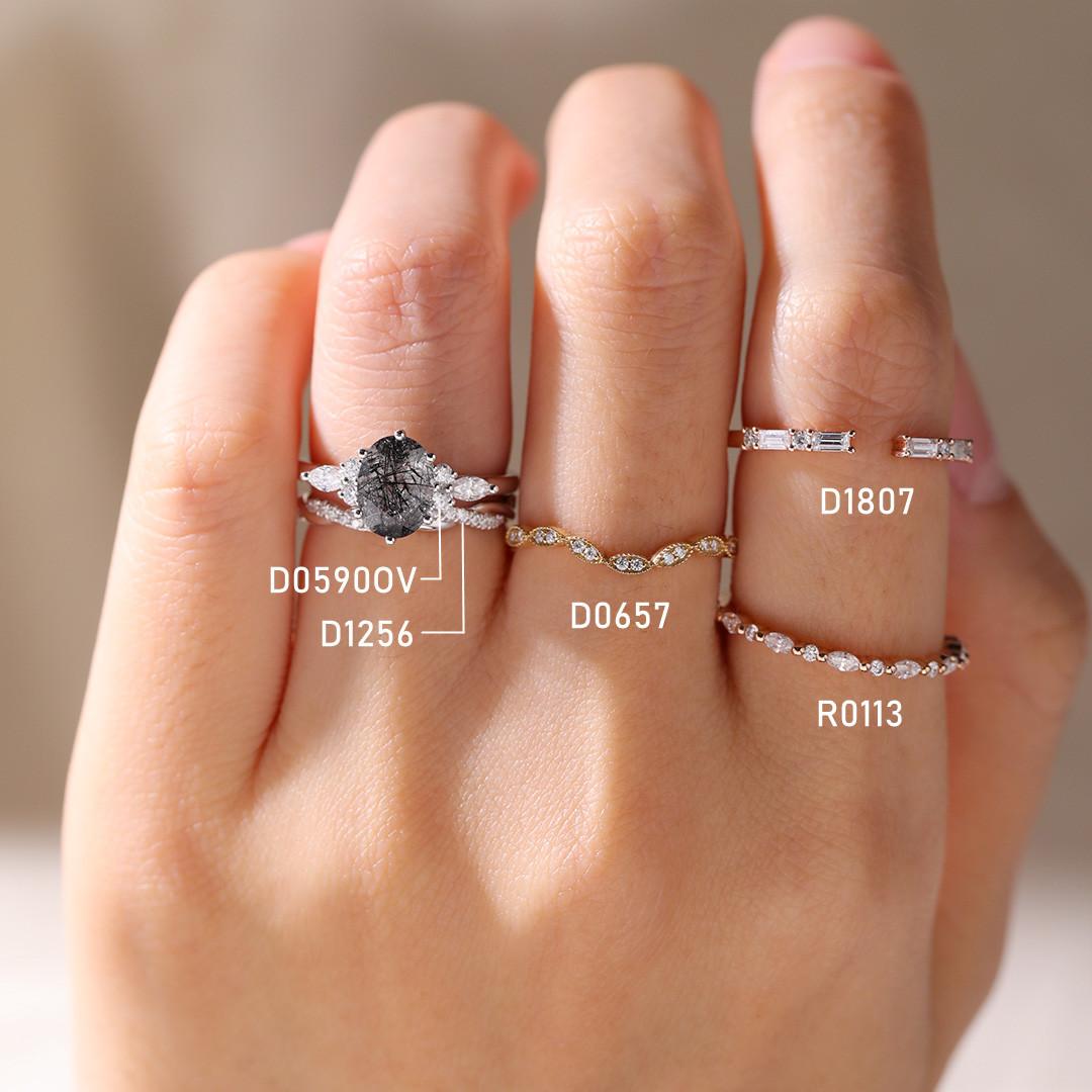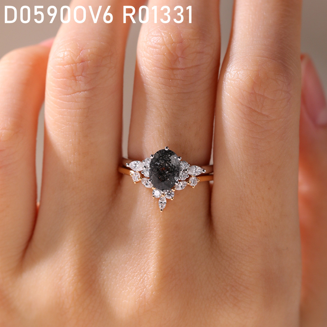 White Gold Oval Cut Black Rutilated Quartz Ring Simple Engagement Rings