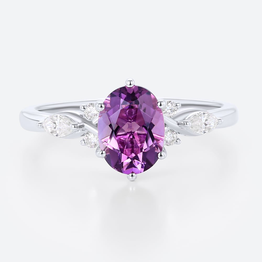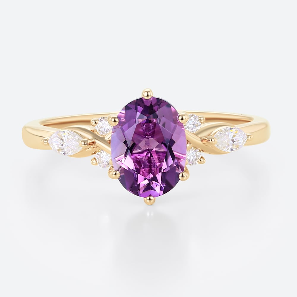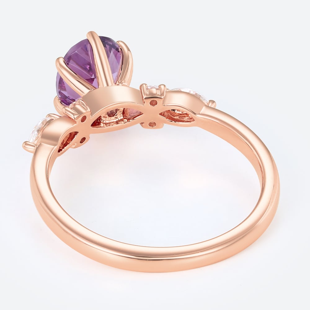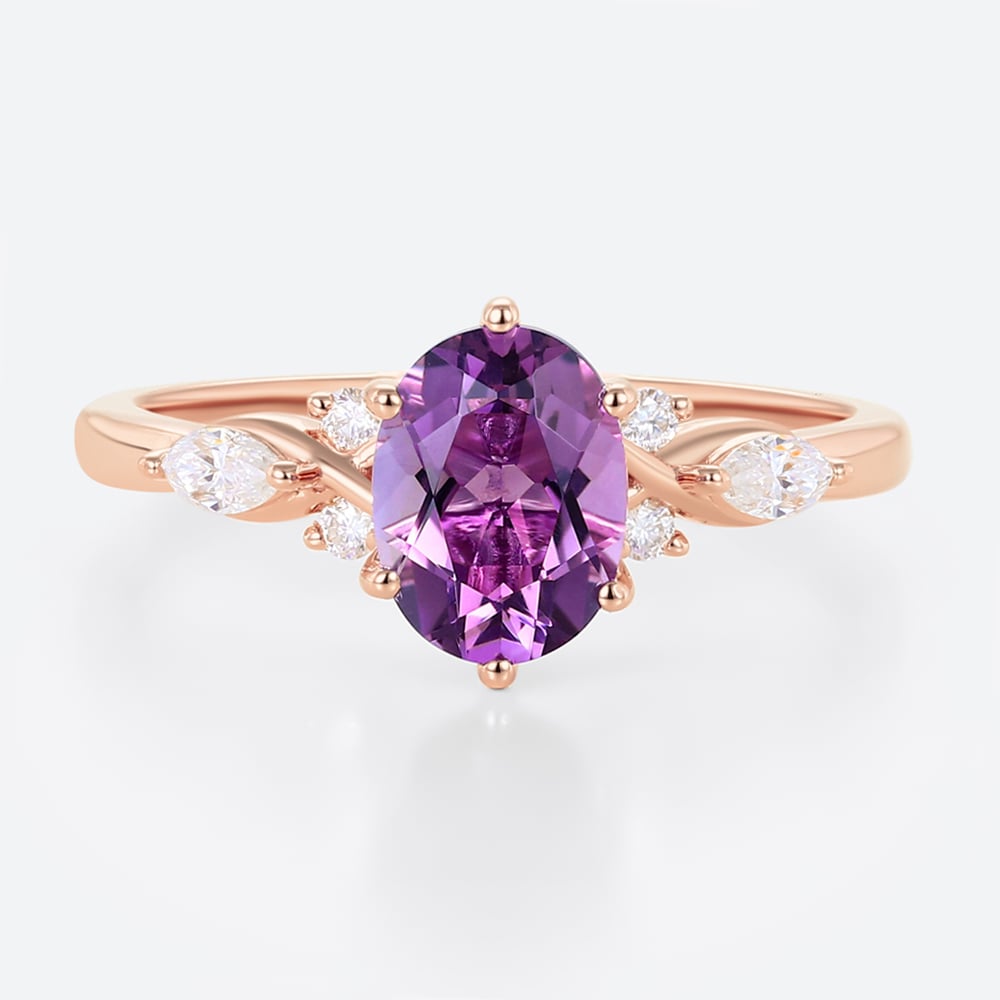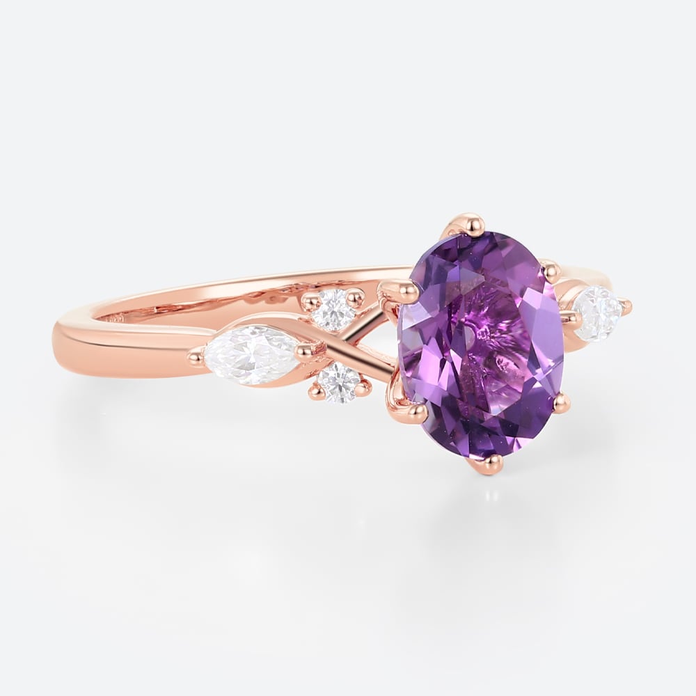 Rose Gold Vintage Oval Cut Amethyst Engagement Ring Marquise Moissanite Side Stone Ring