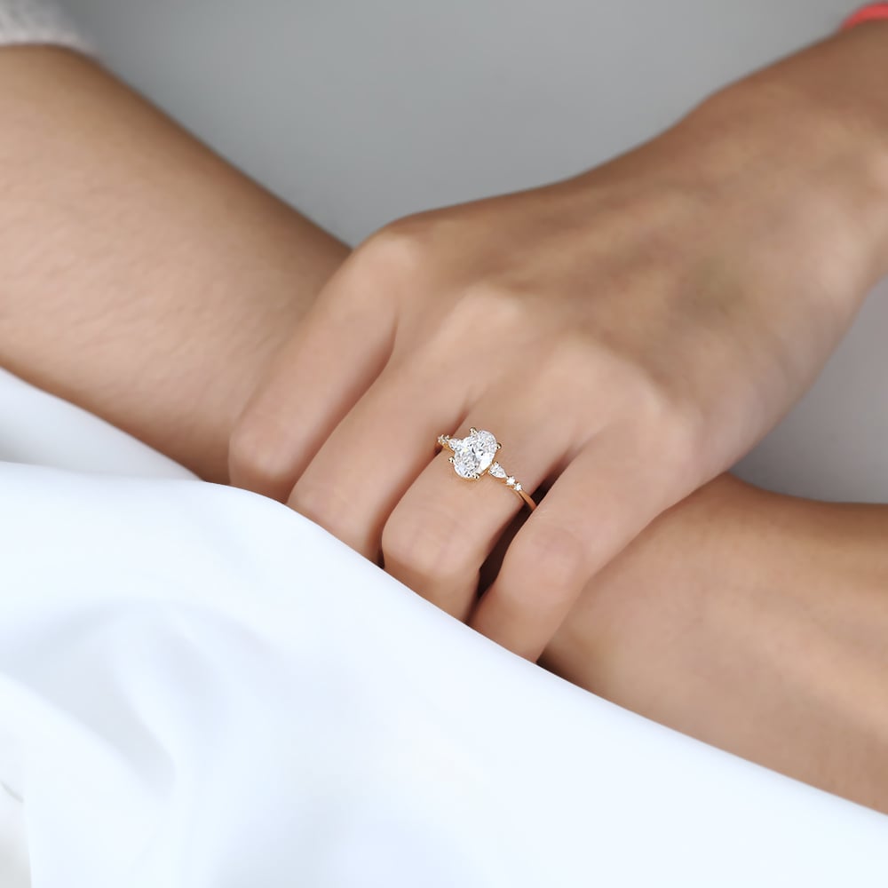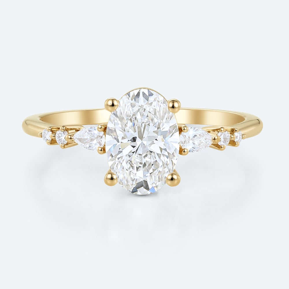 Oval Cut Lab Grown Diamond Petite 4-Prong Engagement Ring in Yellow Gold