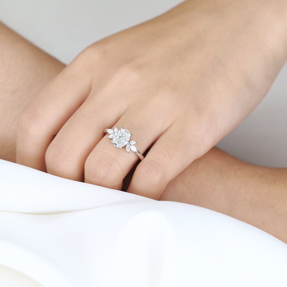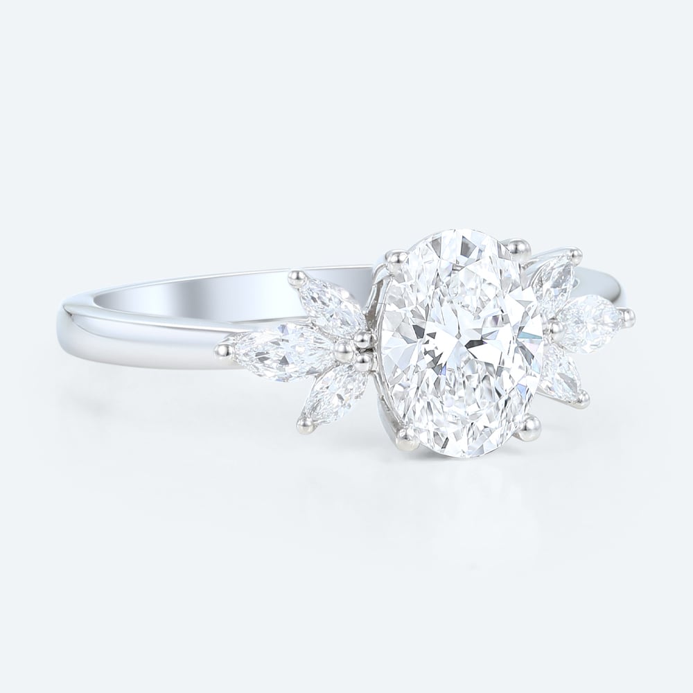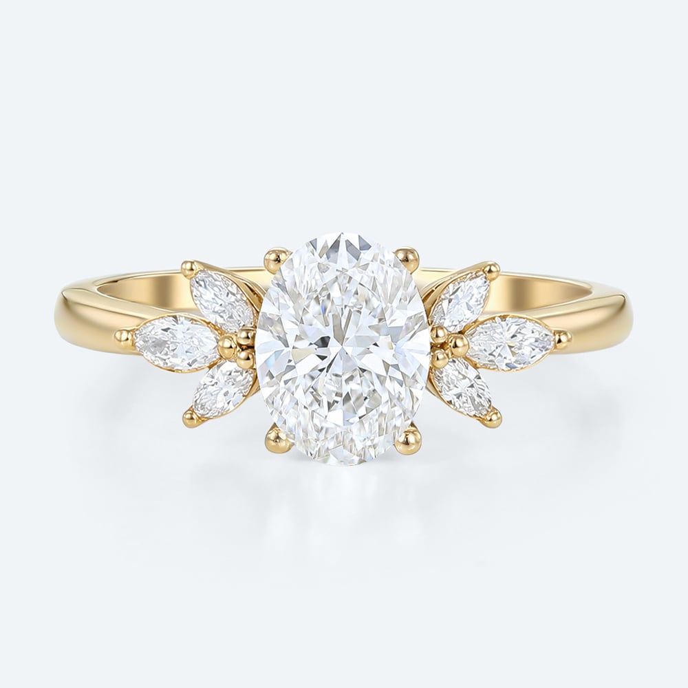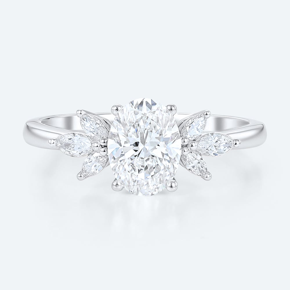 2.5ct Oval Cut Lab Grown Diamond Cluster Engagement Rings Radiant Sophistication Ring Set