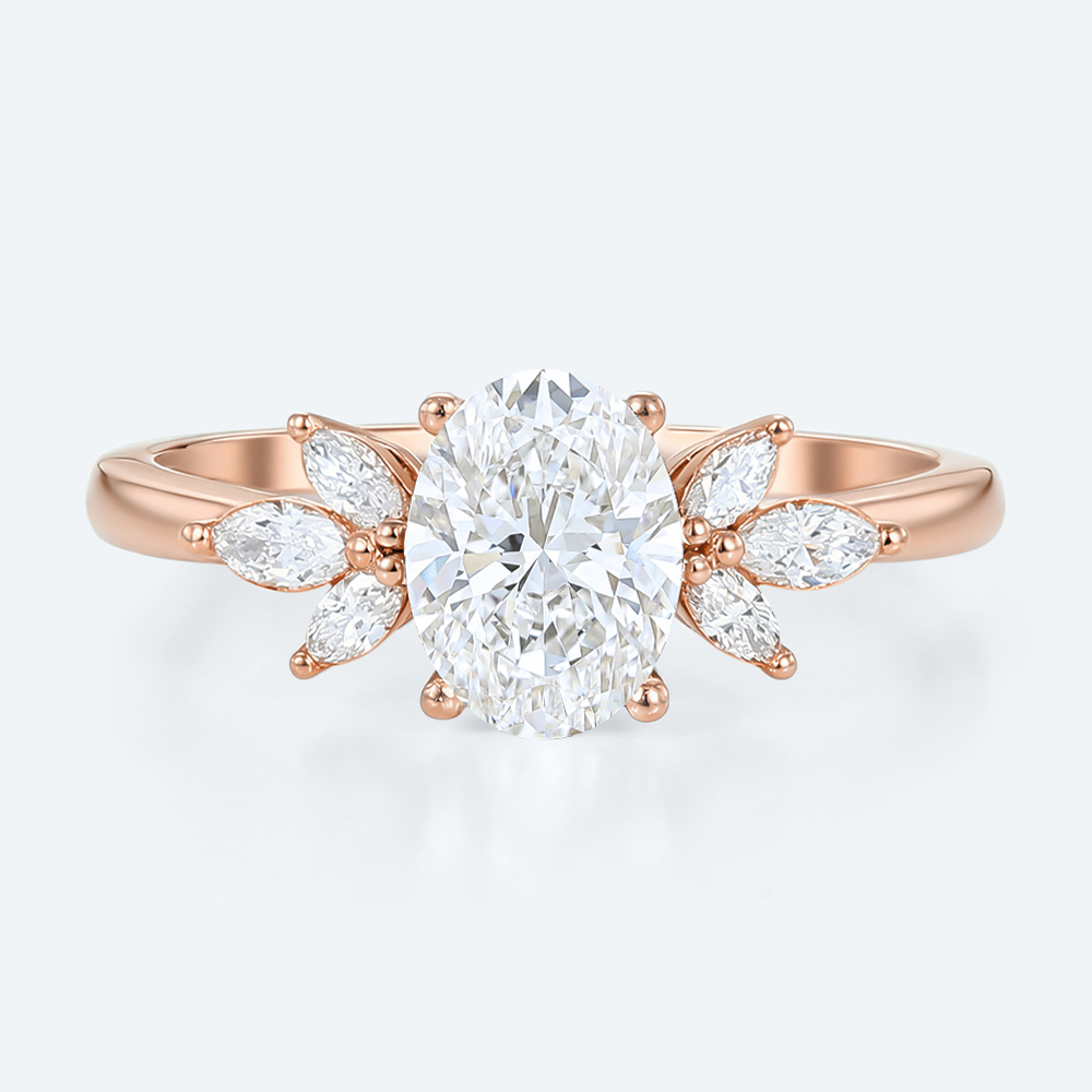 Oval Cut Lab Grown Diamond Cluster 4-Prong Engagement Ring Thin Band in Rose Gold