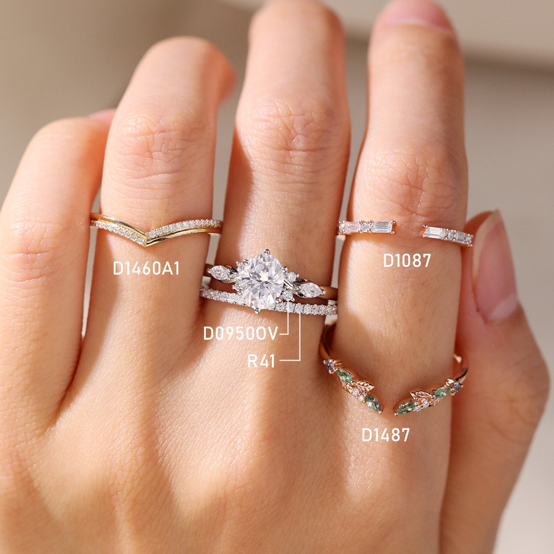 Oval Cut Moissanite Cluster Engagement Rings Classic Bridal Ring