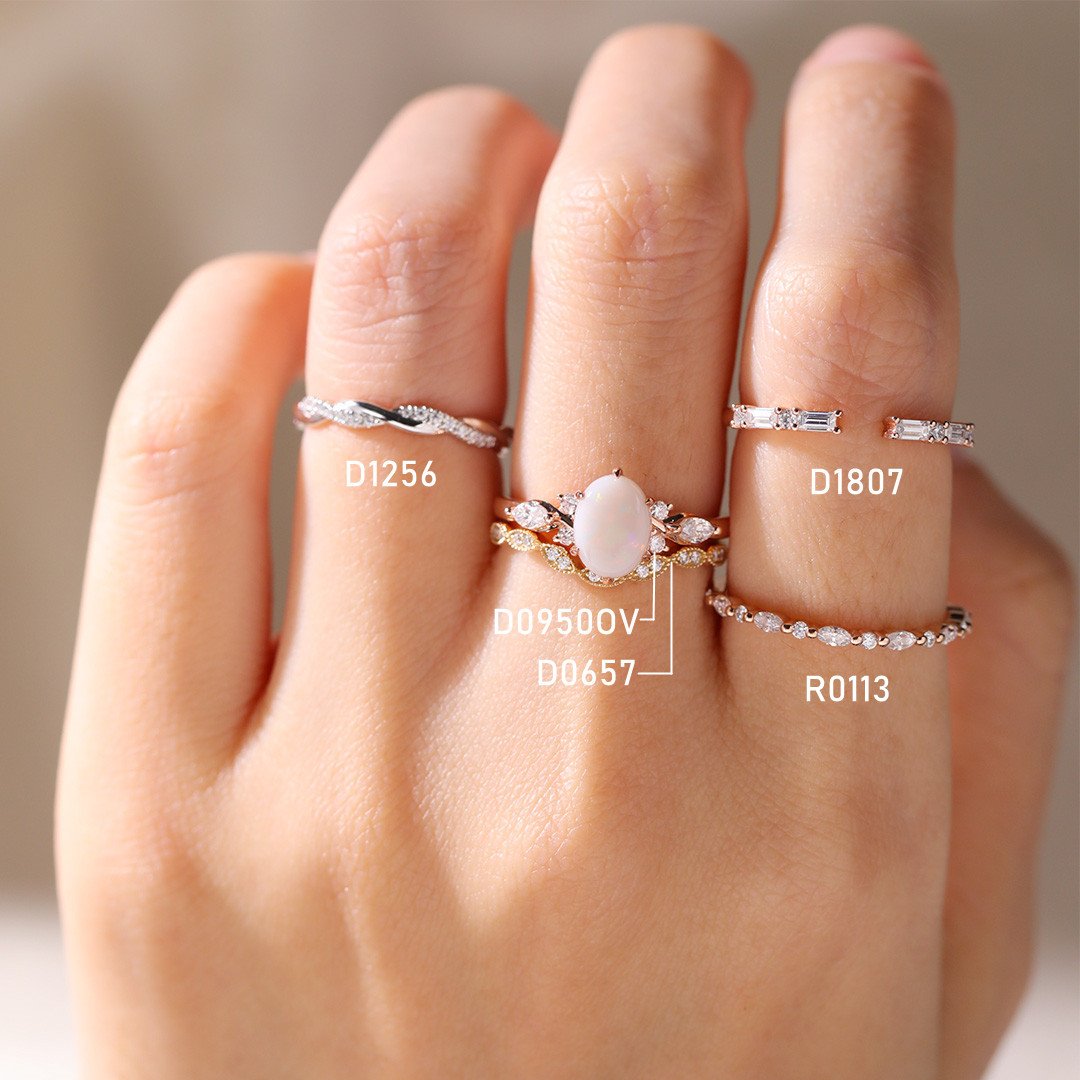 Rose Gold Oval Opal Ring Vintage Engagement Rings for Women