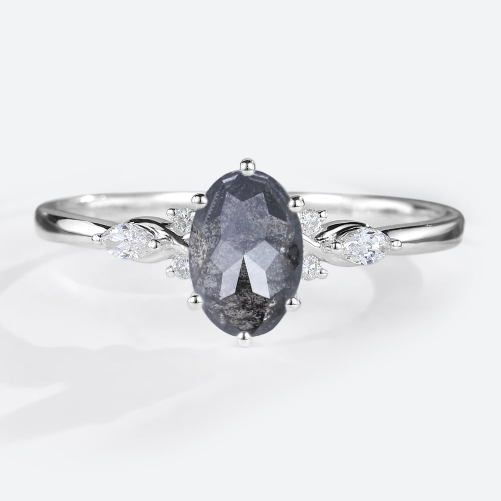 Oval Cut Salt & Pepper Diamond Engagement Ring Vintage Bridal Ring