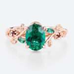 Oval Cut Lab Emerald Nature-Inspired Engagement Ring with Lab Ruby Accents