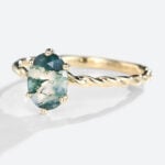 Oval Moss Agate engagement ring yellow gold vintage engagement ring dainty solitaire 3/4 eternity twisted ring bridal ring anniversary ring promise gift