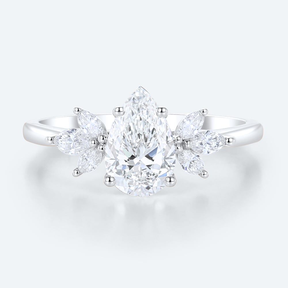 White Gold Pear Shaped Amethyst Engagement Ring Moissanite Ring Simple Engagement Rings