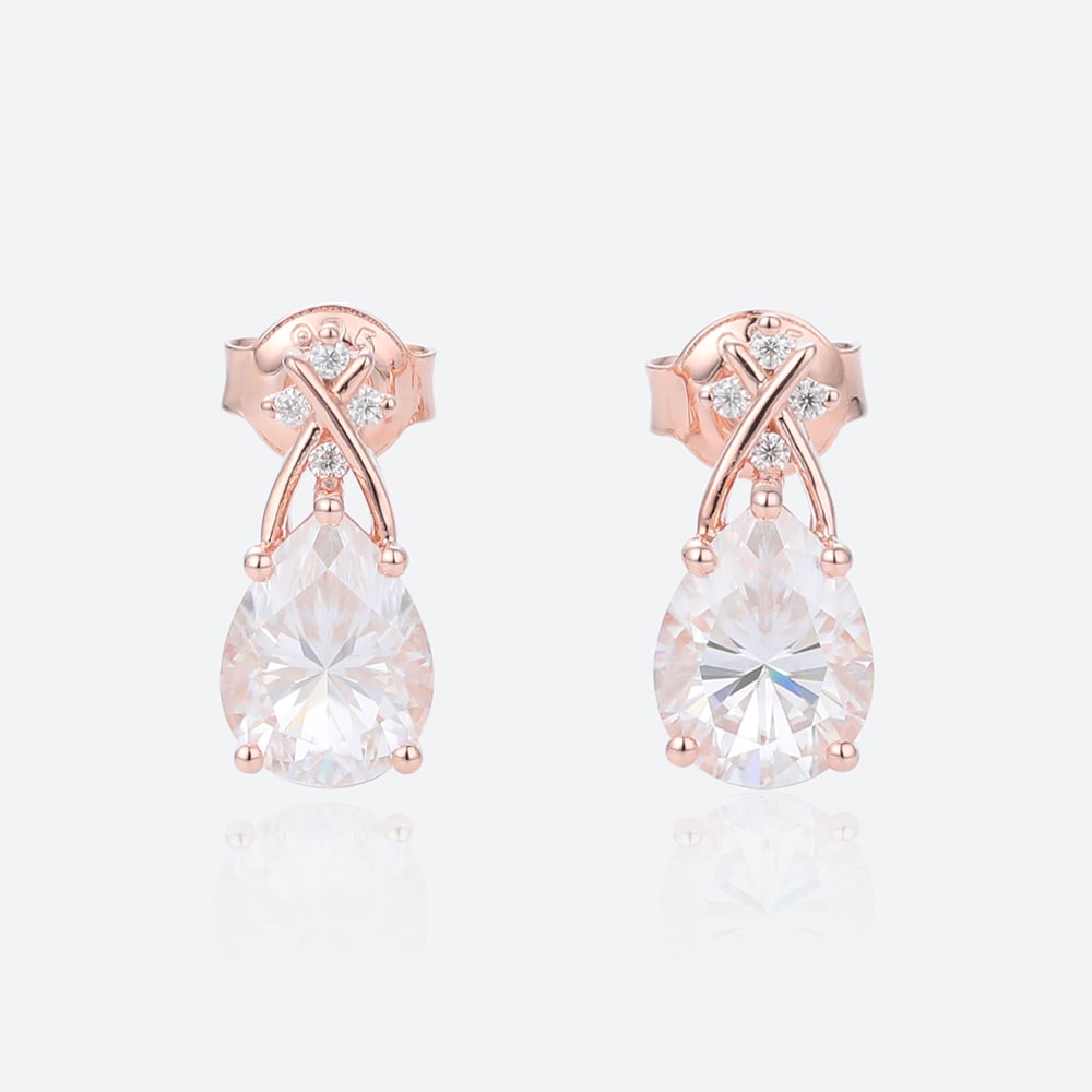 Pear Cut Lab Grown Diamond Elegant Ribbon Stud Earrings in Rose Gold