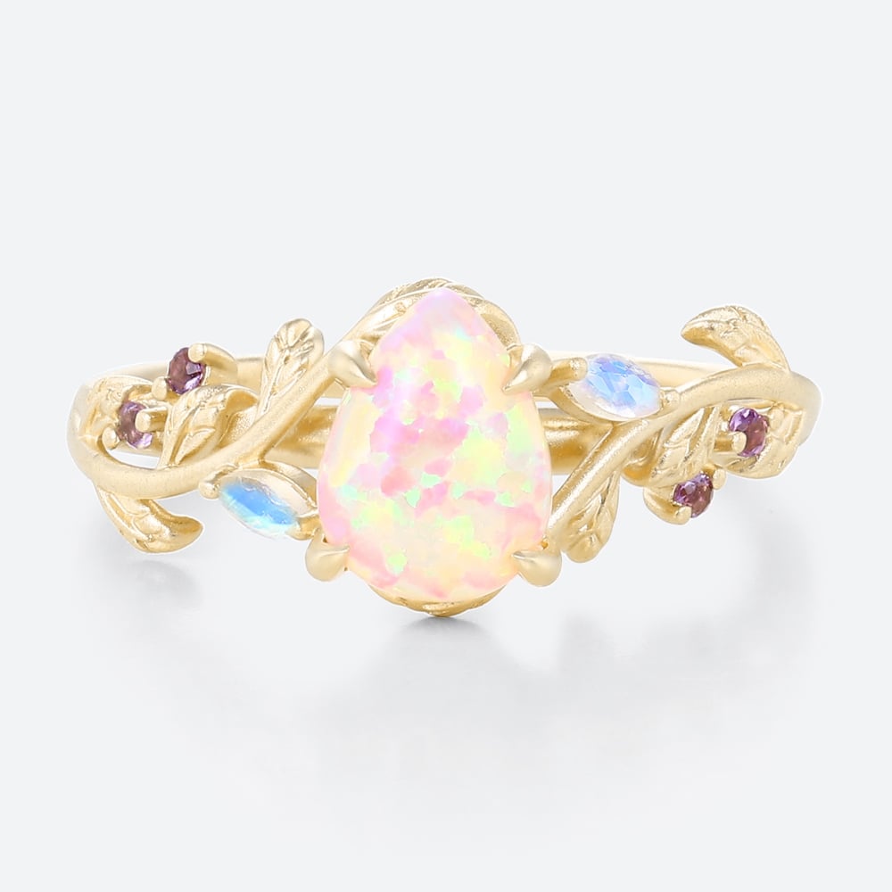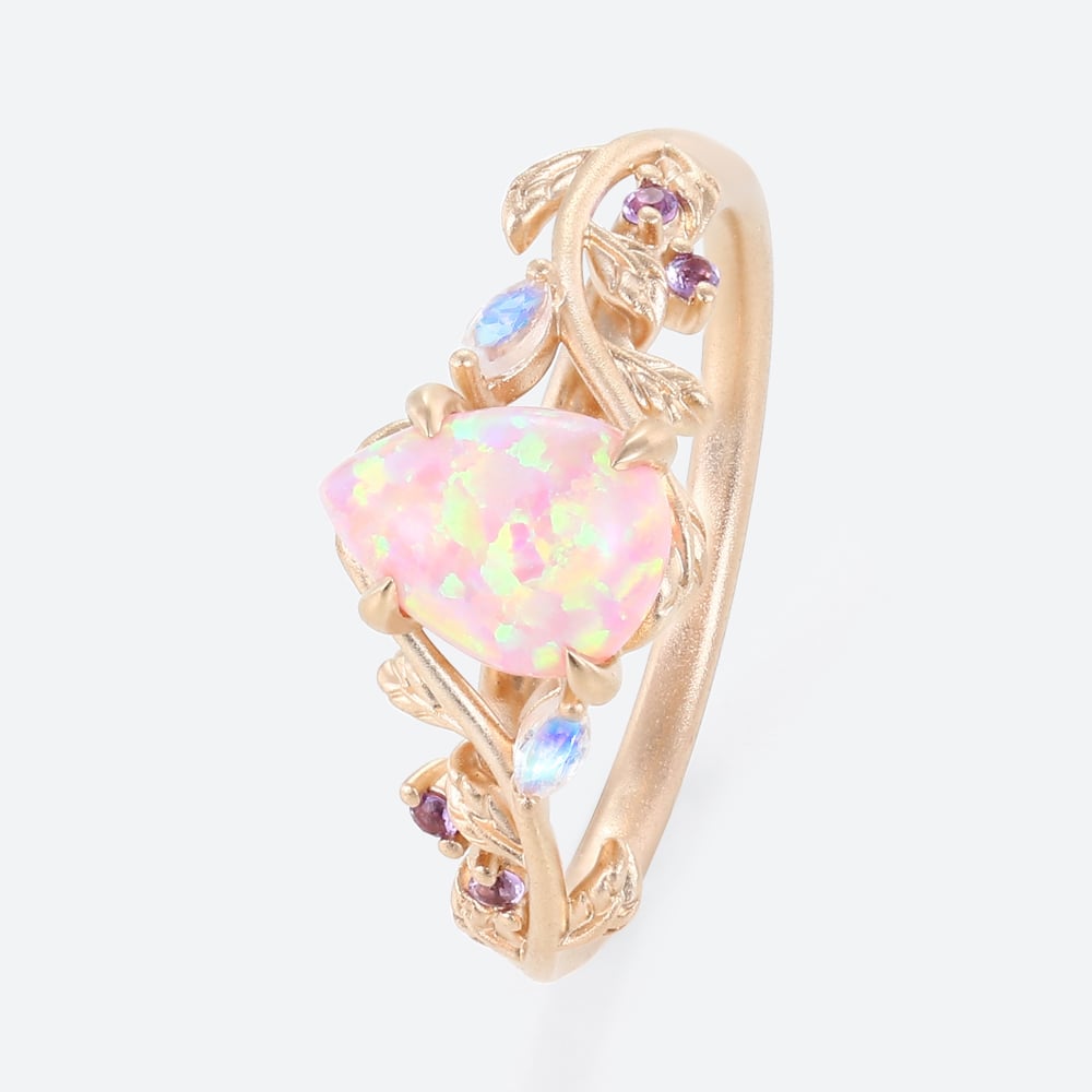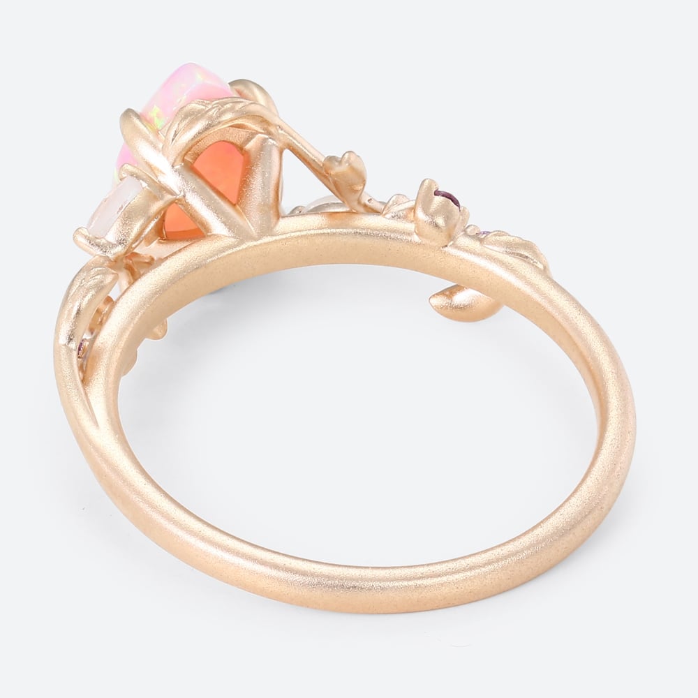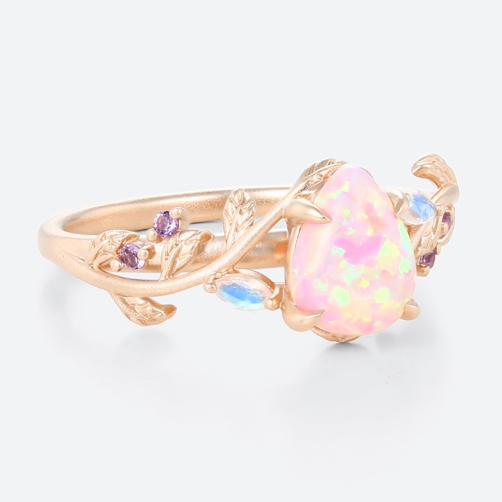Pear Cut Pink Opal Nature-Inspired Engagement Ring with Matte Finish in Rose Gold