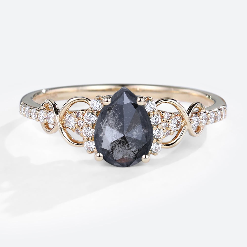 Rose Gold Pear Cut Salt & Pepper Diamond Engagement Ring Infinity Bridal Ring