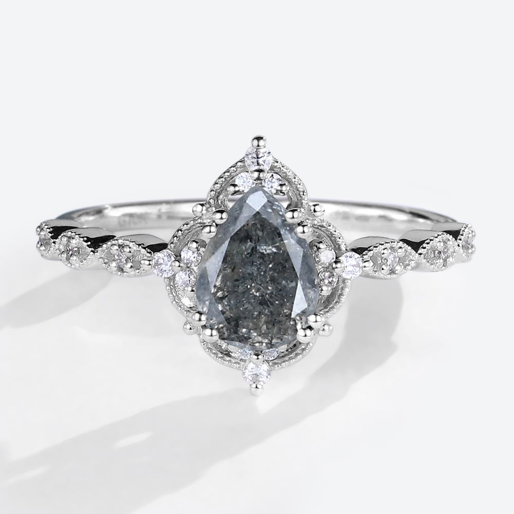 Rose Gold Pear Cut Salt & Pepper Diamond Engagement Ring Anniversary Ring