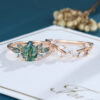 Rose Gold Pear Shaped Moss Agate Ring Marquise Moss Agate Side Stone Engagement Ring Petal Shape Wedding Ring Set