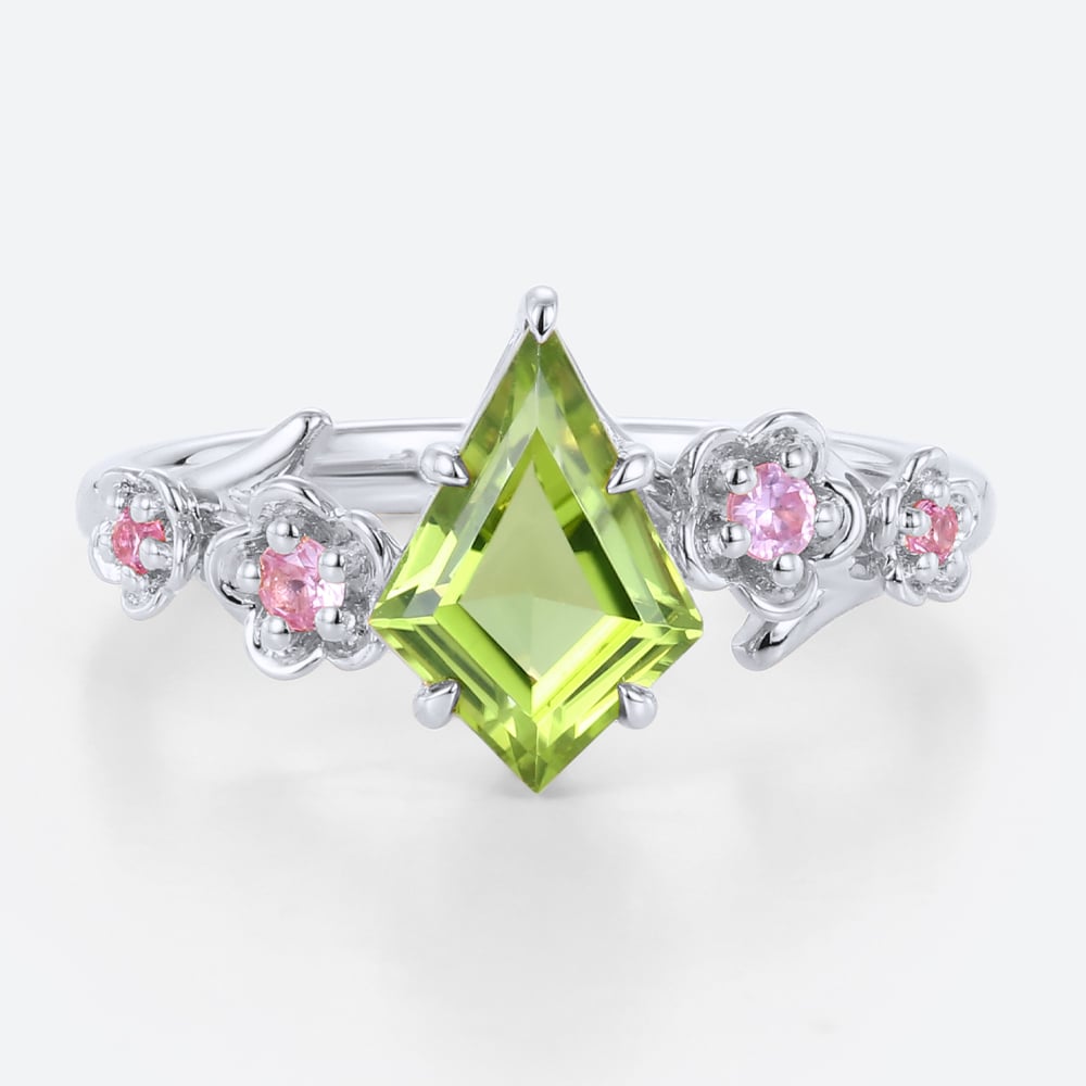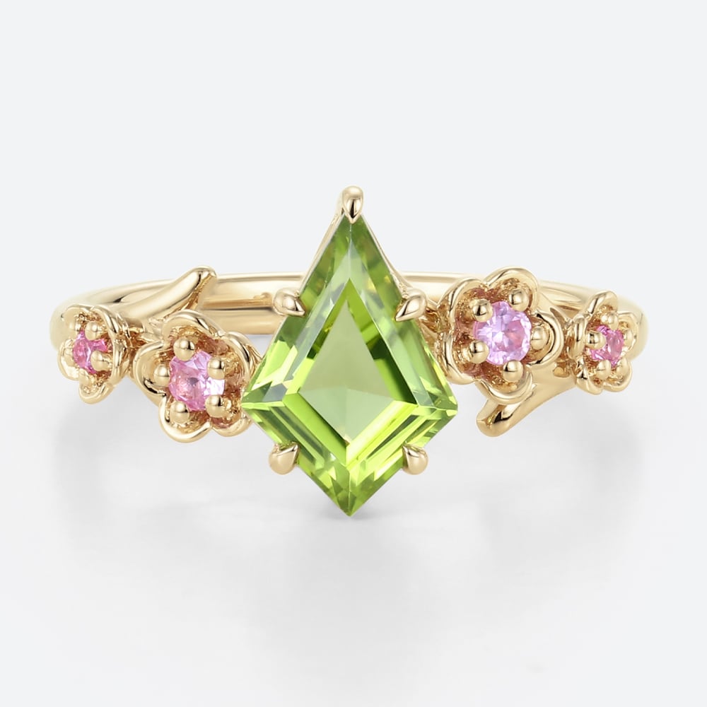 Rose Gold Kite Cut Peridot Blossom Engagement Ring Charming Flora Bridal Ring