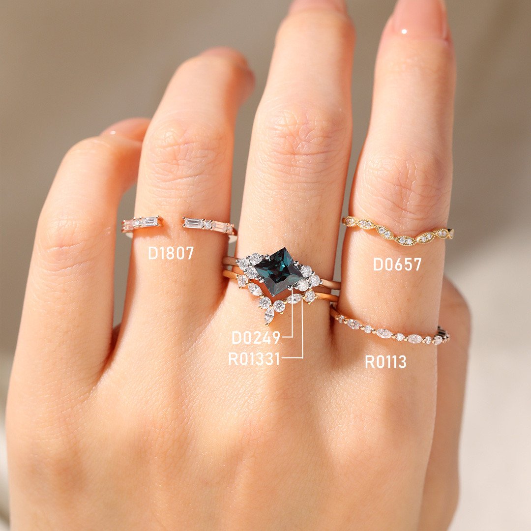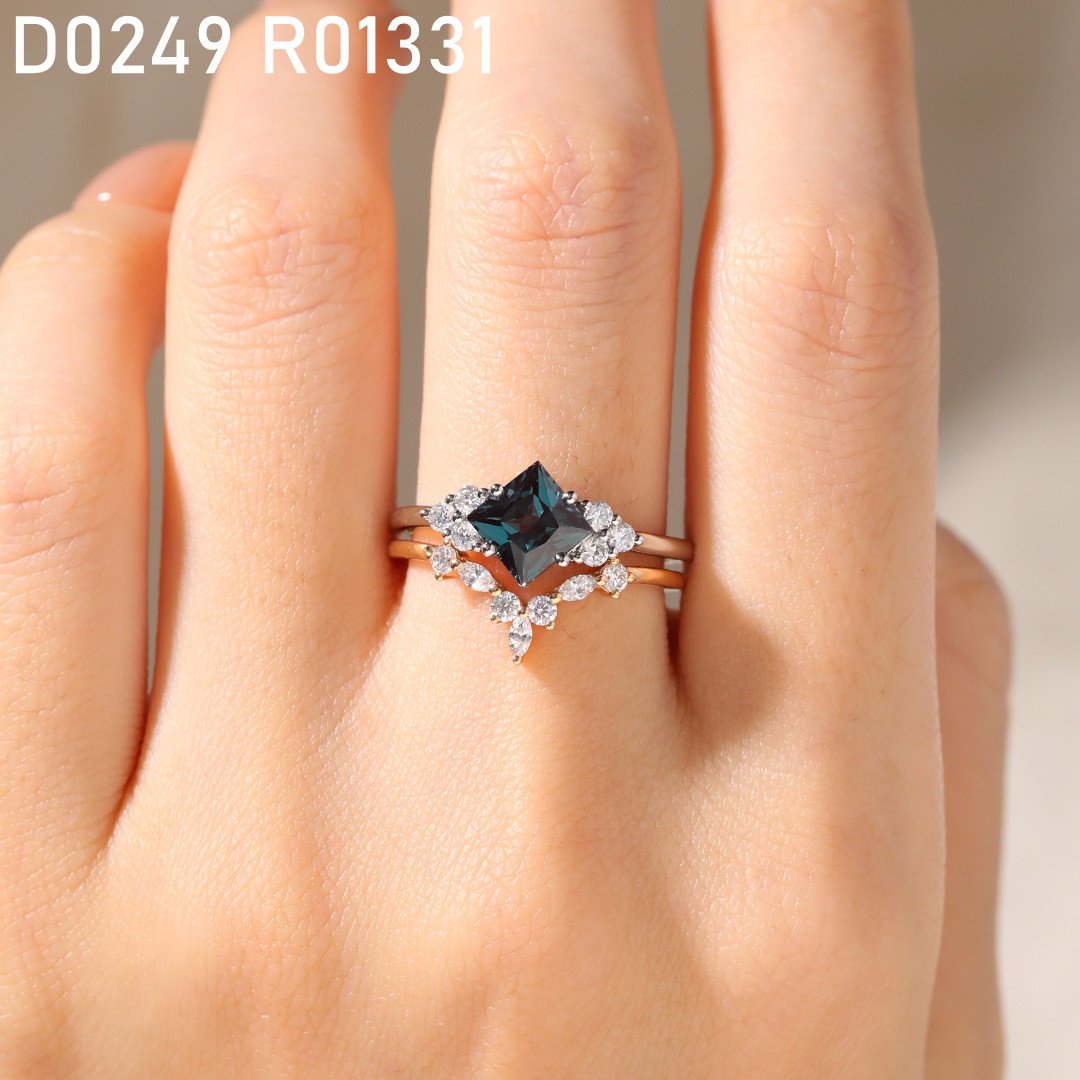 White Gold Princess Cut Alexandrite Rings Unique Artistic Engagement Ring
