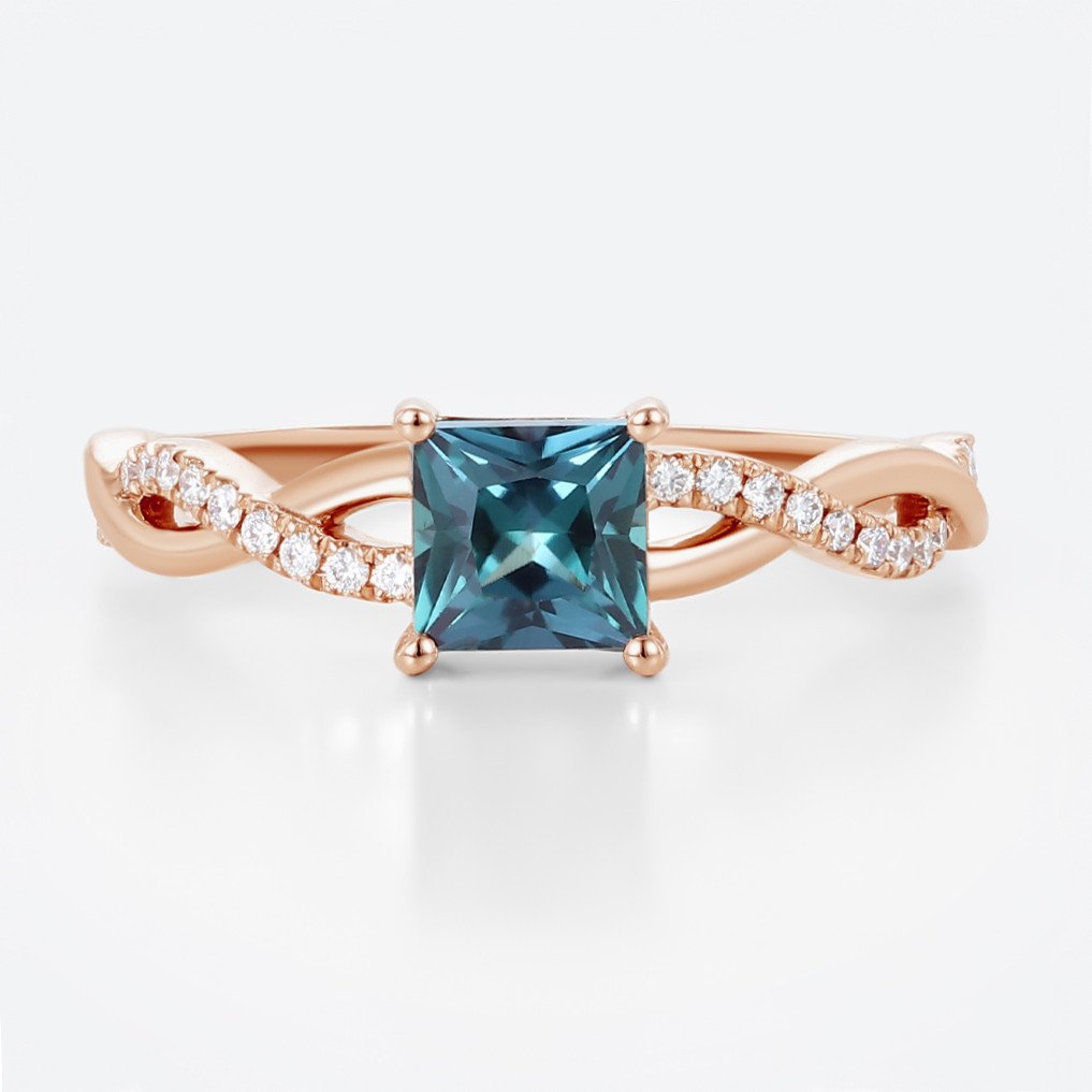 Princess Cut Alexandrite Interlaced Pavé Engagement Ring with Infinity Design in Rose Gold