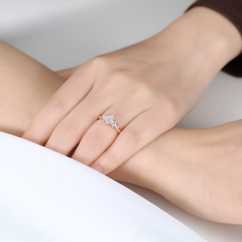 Princess Cut Lab Grown Diamond Infinity 4 V-Prong Engagement Promise Ring in Rose Gold