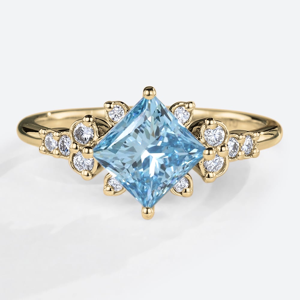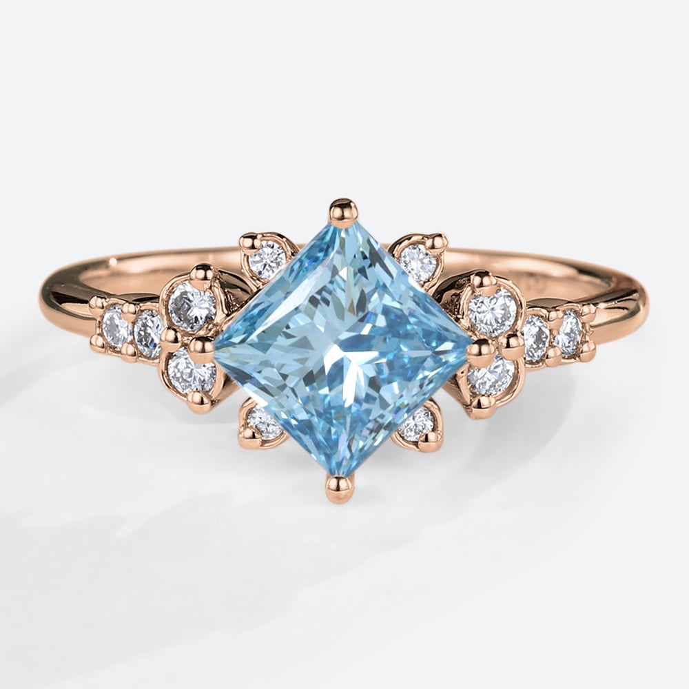 1.5ct Fancy Blue VS+ Princess Cut Lab Grown Blue Diamond Cluster 4-Prong Engagement Promise Ring in White Gold