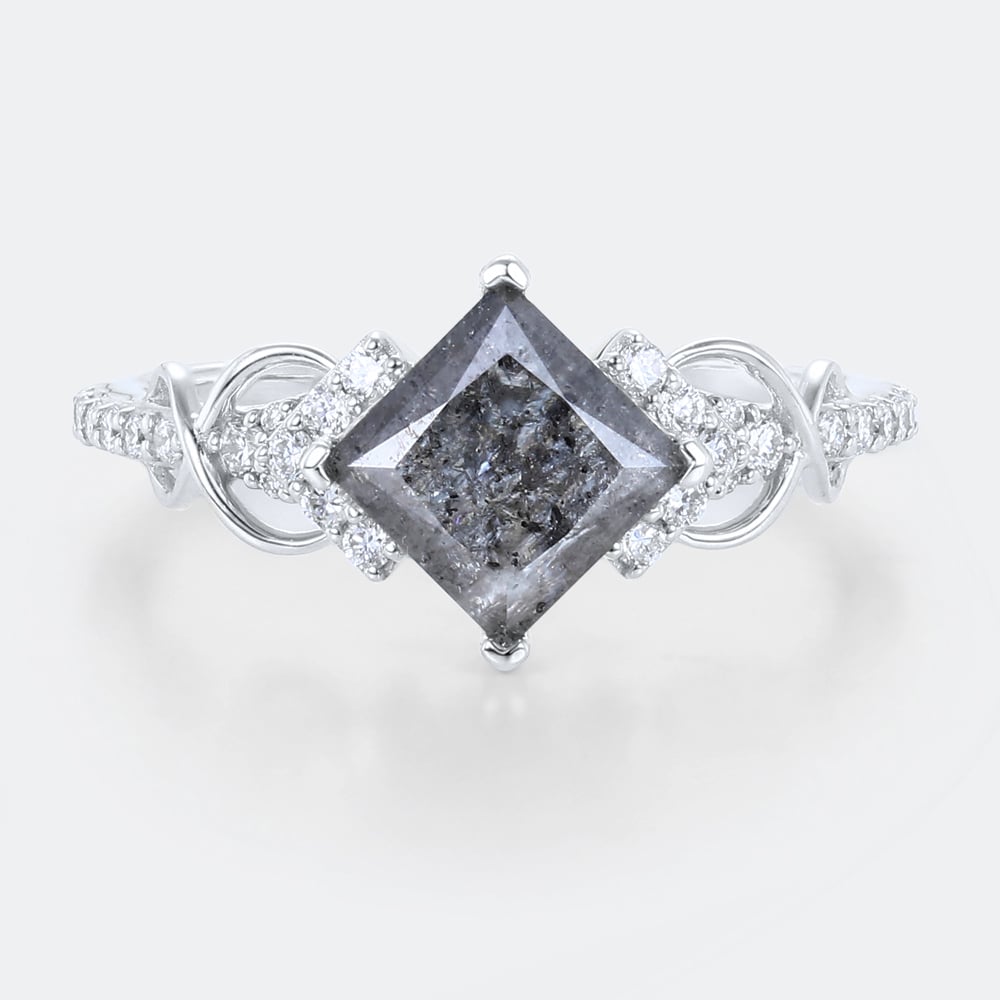 Princess Cut Salt & Pepper Diamond Engagement Ring Infinity Promise Ring