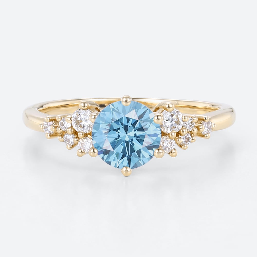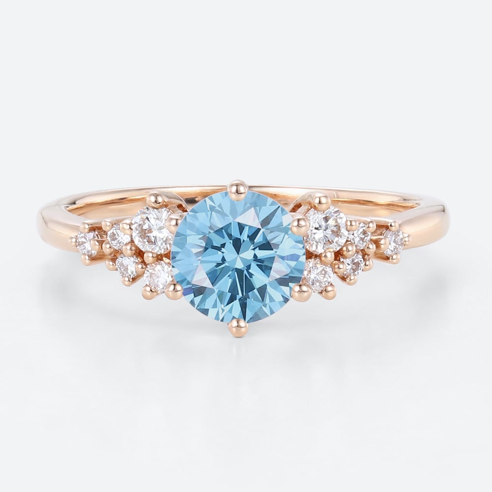 1ct Fancy Blue VS+ Round Cut Lab Grown Blue Diamond Cluster 6-Prong Engagement Promise Ring in White Gold